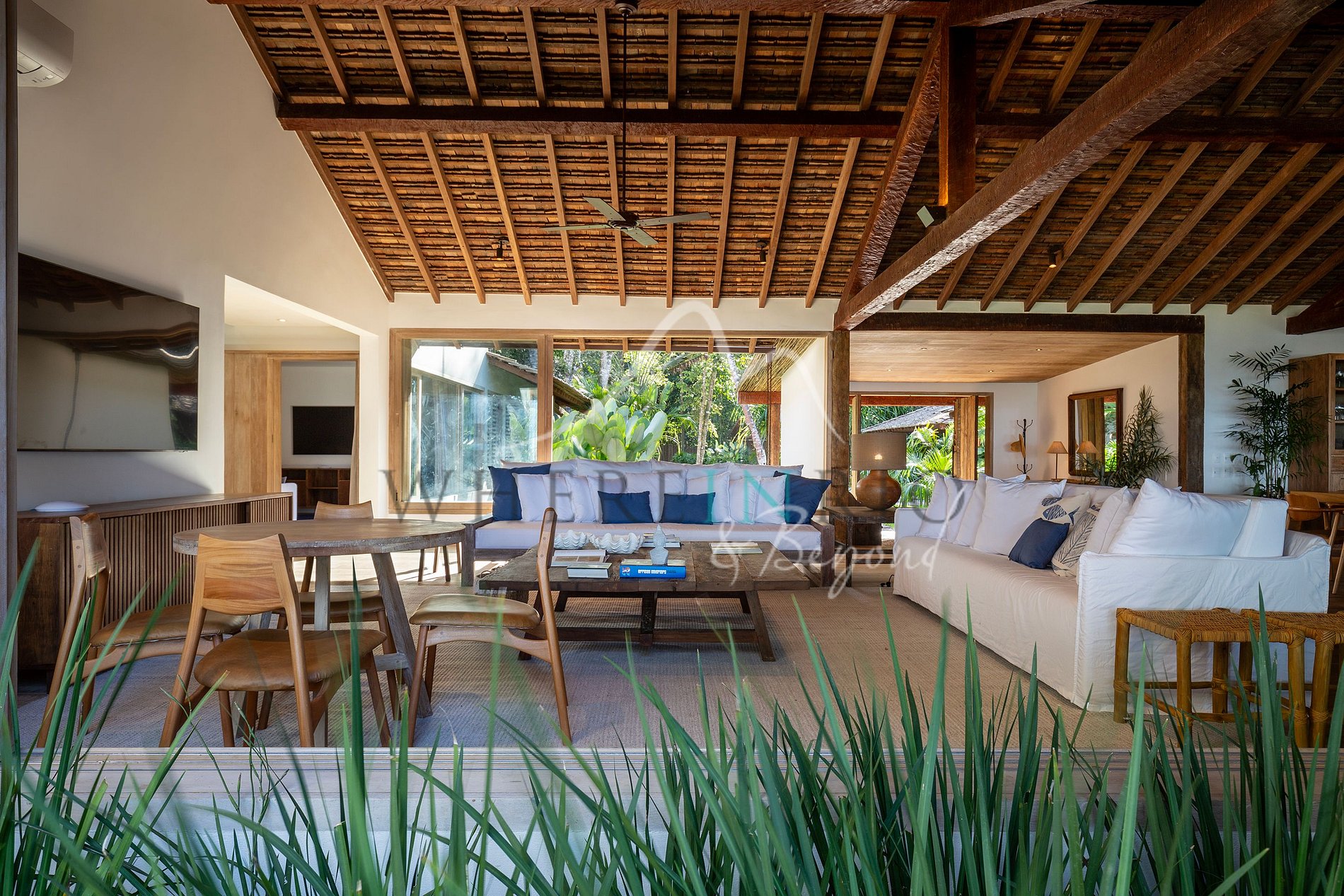 Villa de lujo frente al mar en condominio exclusivo de Trancoso, con vista al océano y acceso privado a la playa.
