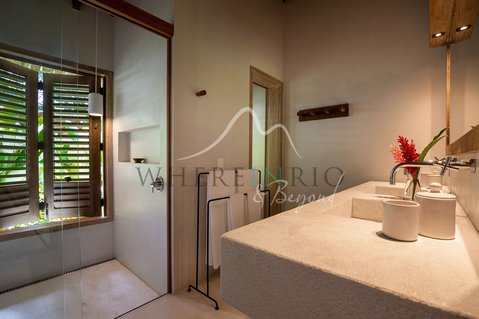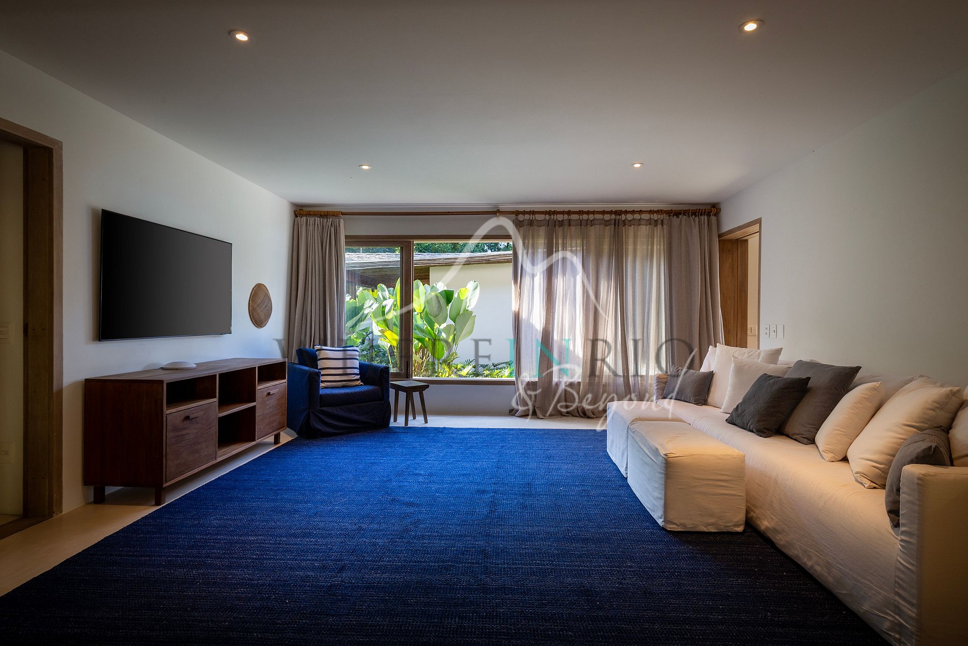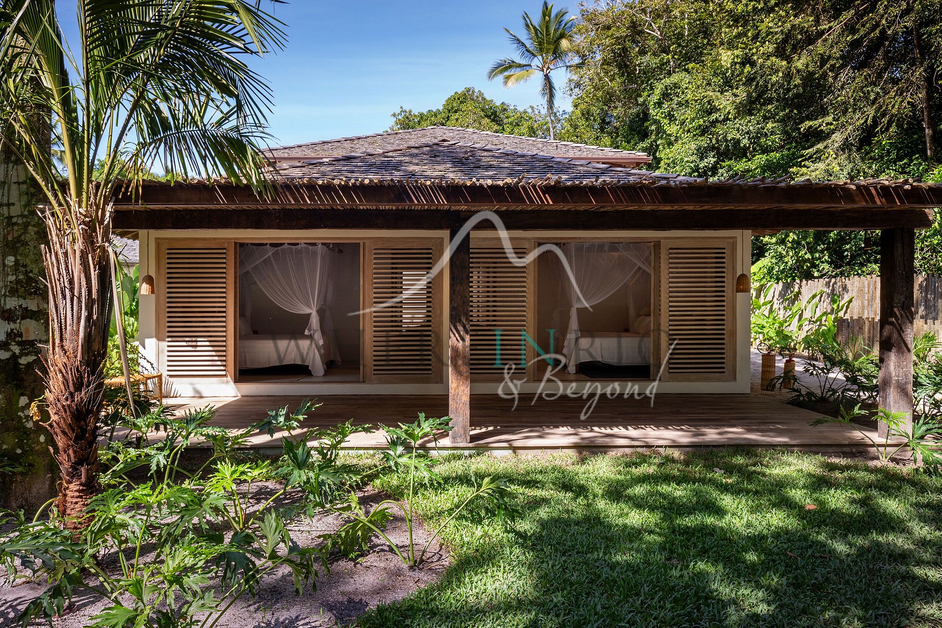 Con capacidad para 14 personas, la casa tiene 7 suites elegantes — una de ellas en un encantador bungalow independiente — todas decoradas con estilo y confort. Los ambientes internos y externos se conectan con fluidez para disfrutar y relajarse.