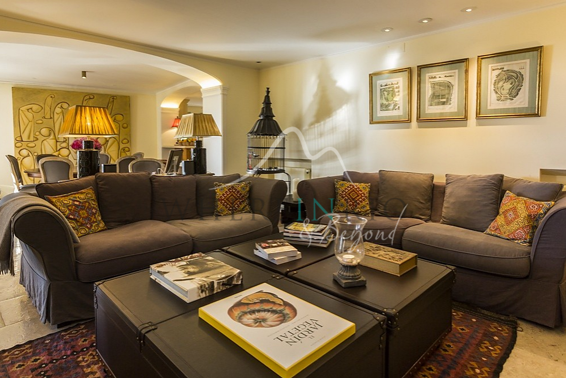 La villa dégage une ambiance accueillante, avec des étagères ornant de nombreux murs et quelques touches de verdure ajoutant une touche de fraîcheur aux pièces. Agrémentée d'œuvres d'art captivantes et de sculptures, l'intérieur de la villa est complété par une cuisine entièrement équipée avec des appareils modernes, idéale pour les amateurs de cuisine.