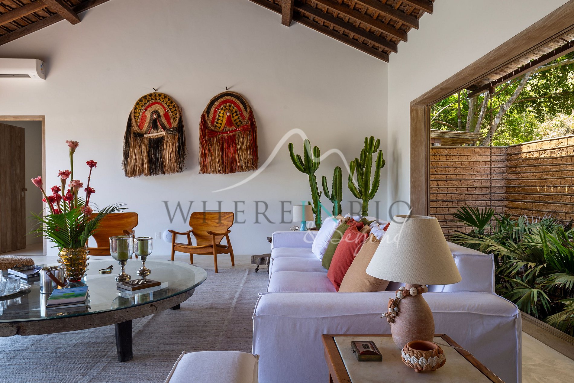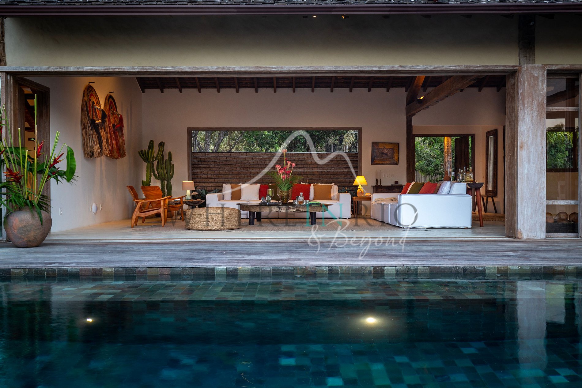 Casa Aroeira, villa de luxe à Trancoso avec 6 suites, piscine privée, barbecue, vue sur mer, entourée par la forêt atlantique et proche de la plage Itapororoca.