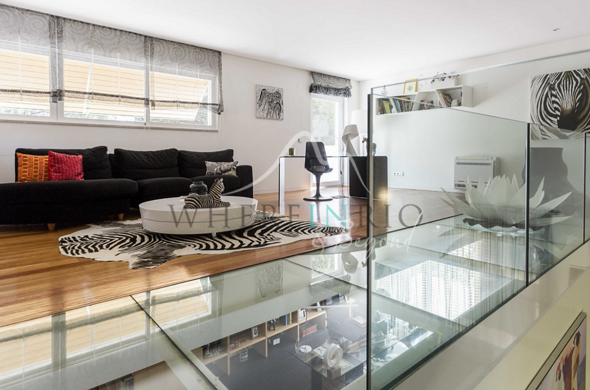 Les quatre suites sont généreusement spacieuses et confortables, toutes donnant accès à la terrasse et au jardin, certaines offrant une vue sur la piscine. À l'étage, une spacieuse mezzanine en verre abrite le bureau.