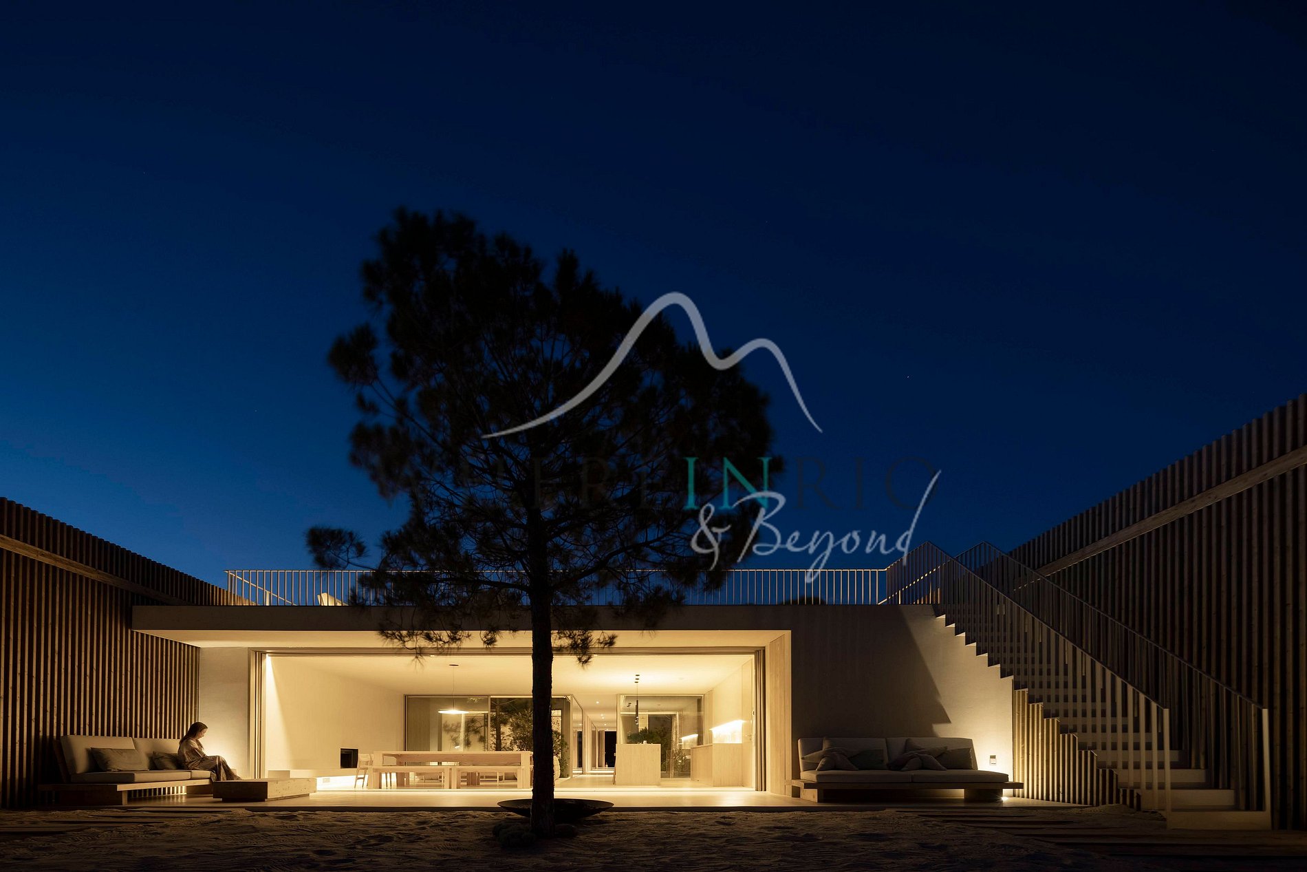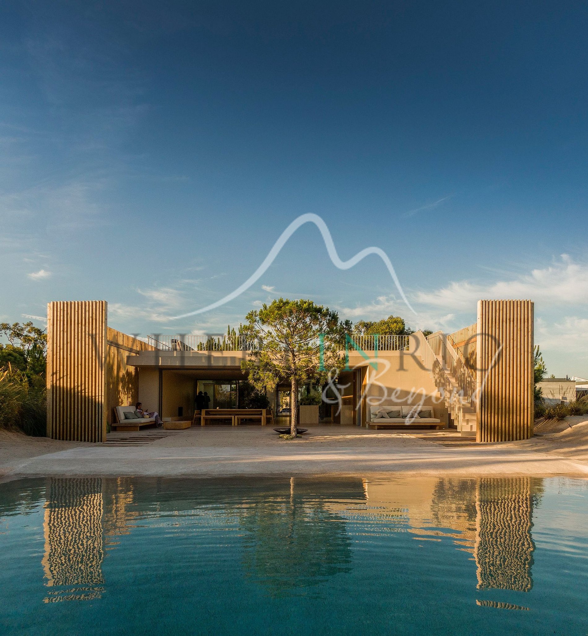 Située dans le village de Comporta, la Maison de Plage de Luxe allie luxe et simplicité, nichée parmi les pittoresques champs de riz et le magnifique Parc Naturel d'Arrábida. L'objectif était de développer une résidence en bord de mer qui s'intègre harmonieusement avec la nature environnante.