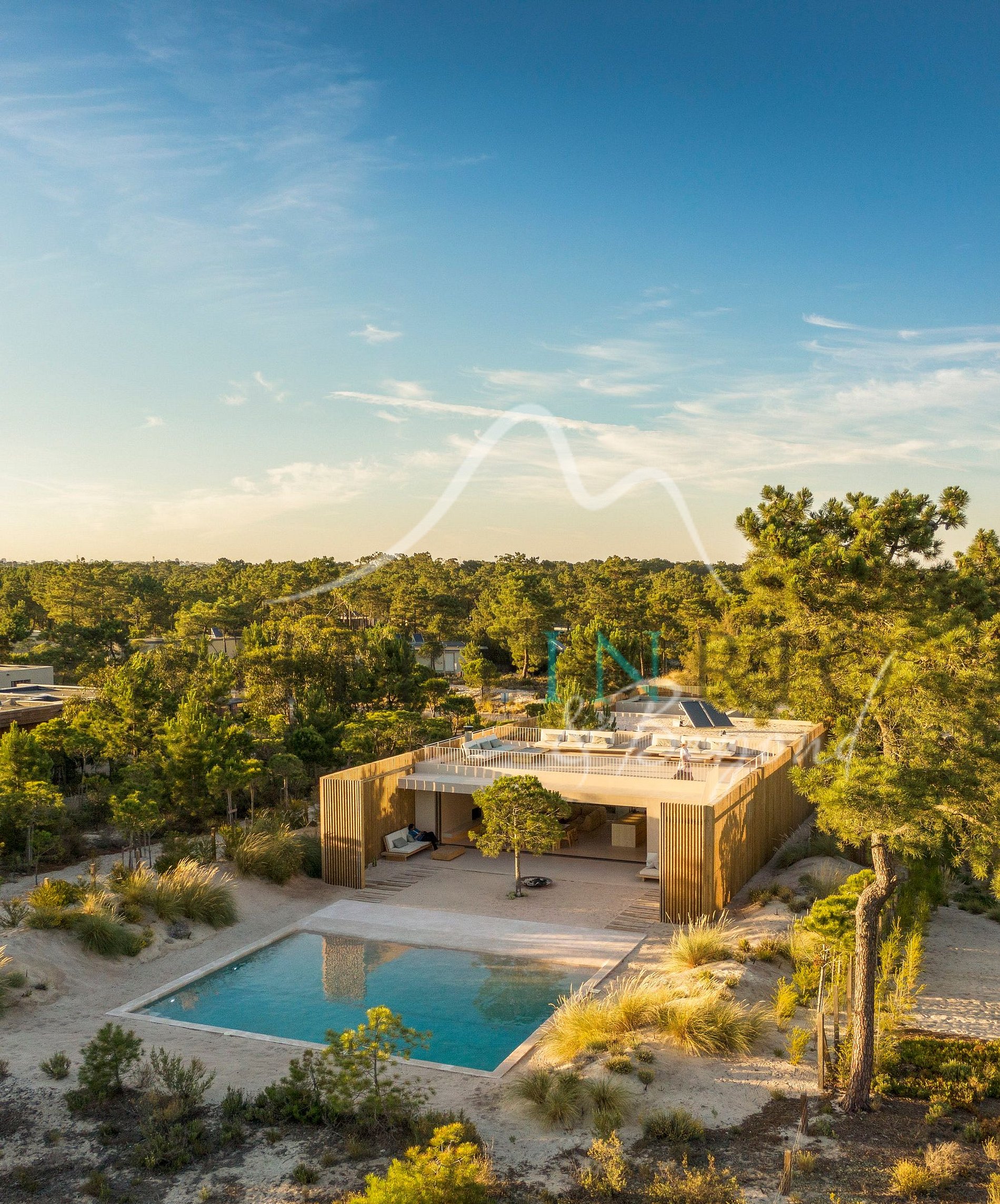 Occupant une superficie de 400 mètres carrés, elle est située au sommet des dunes, au milieu d'une forêt méditerranéenne. Le design intègre quatre jardins intérieurs qui apportent la nature à l'intérieur de la maison. Une cuisine ouverte, un salon et une salle à manger offrent une vue sur un patio extérieur et la piscine. Les intérieurs sont lumineux et frais, créant une atmosphère paisible. À seulement une minute d'une des plages les plus intéressantes d'Europe et l'une des plus longues au monde, vous aurez le silence complet de l'océan et toutes les commodités d'une copropriété de luxe. Des terrains de tennis, de paddle, des terrains de football, des piscines intérieures chauffées et un restaurant ne sont que quelques-unes des options disponibles.