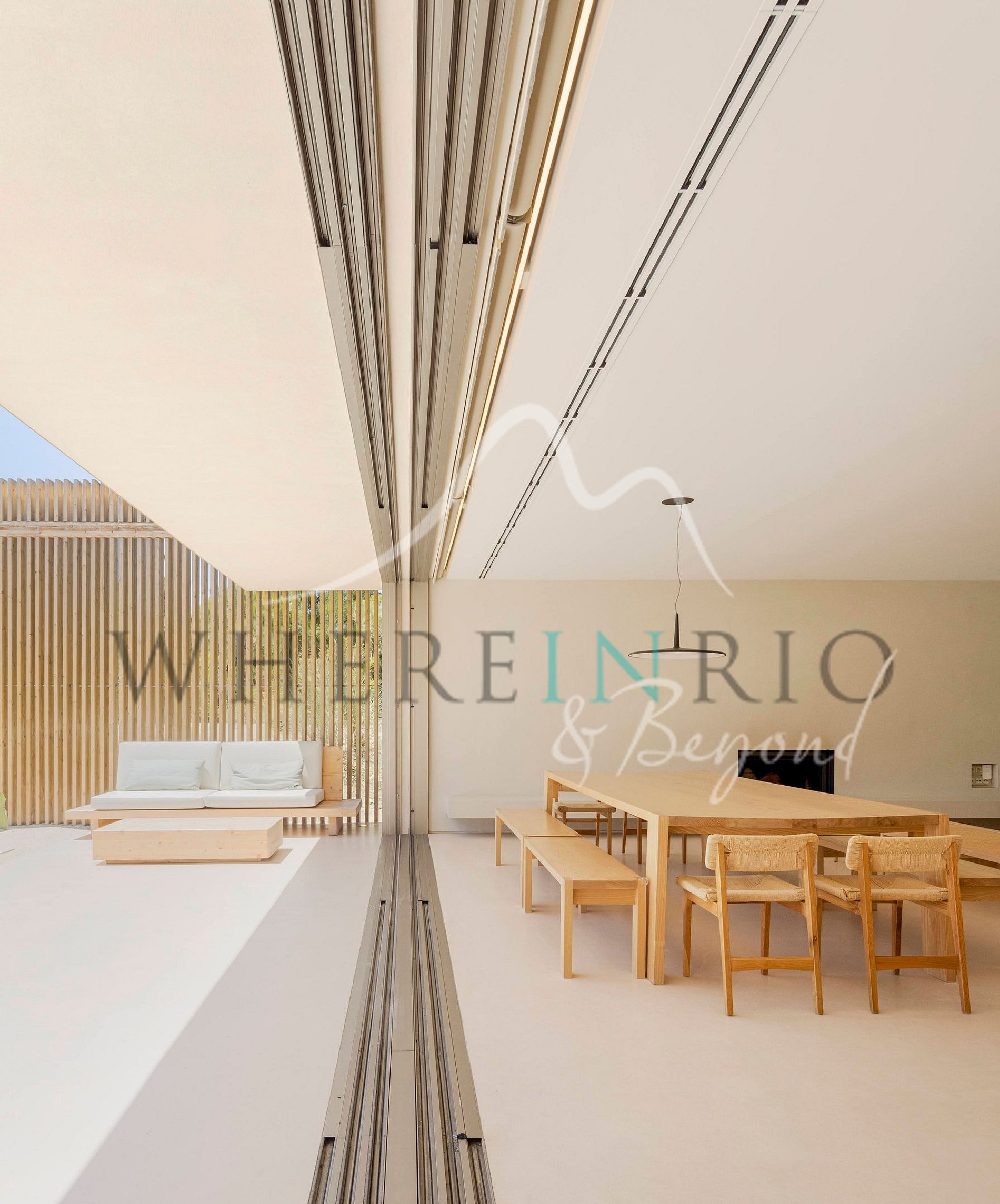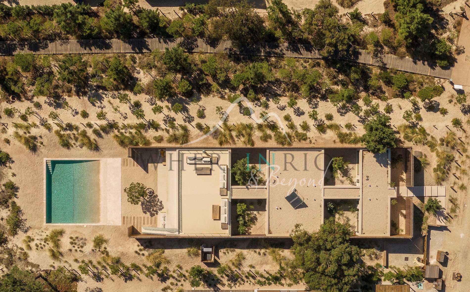 Occupant une superficie de 400 mètres carrés, elle est située au sommet des dunes, au milieu d'une forêt méditerranéenne. Le design intègre quatre jardins intérieurs qui apportent la nature à l'intérieur de la maison. Une cuisine ouverte, un salon et une salle à manger offrent une vue sur un patio extérieur et la piscine. Les intérieurs sont lumineux et frais, créant une atmosphère paisible. À seulement une minute d'une des plages les plus intéressantes d'Europe et l'une des plus longues au monde, vous aurez le silence complet de l'océan et toutes les commodités d'une copropriété de luxe. Des terrains de tennis, de paddle, des terrains de football, des piscines intérieures chauffées et un restaurant ne sont que quelques-unes des options disponibles.