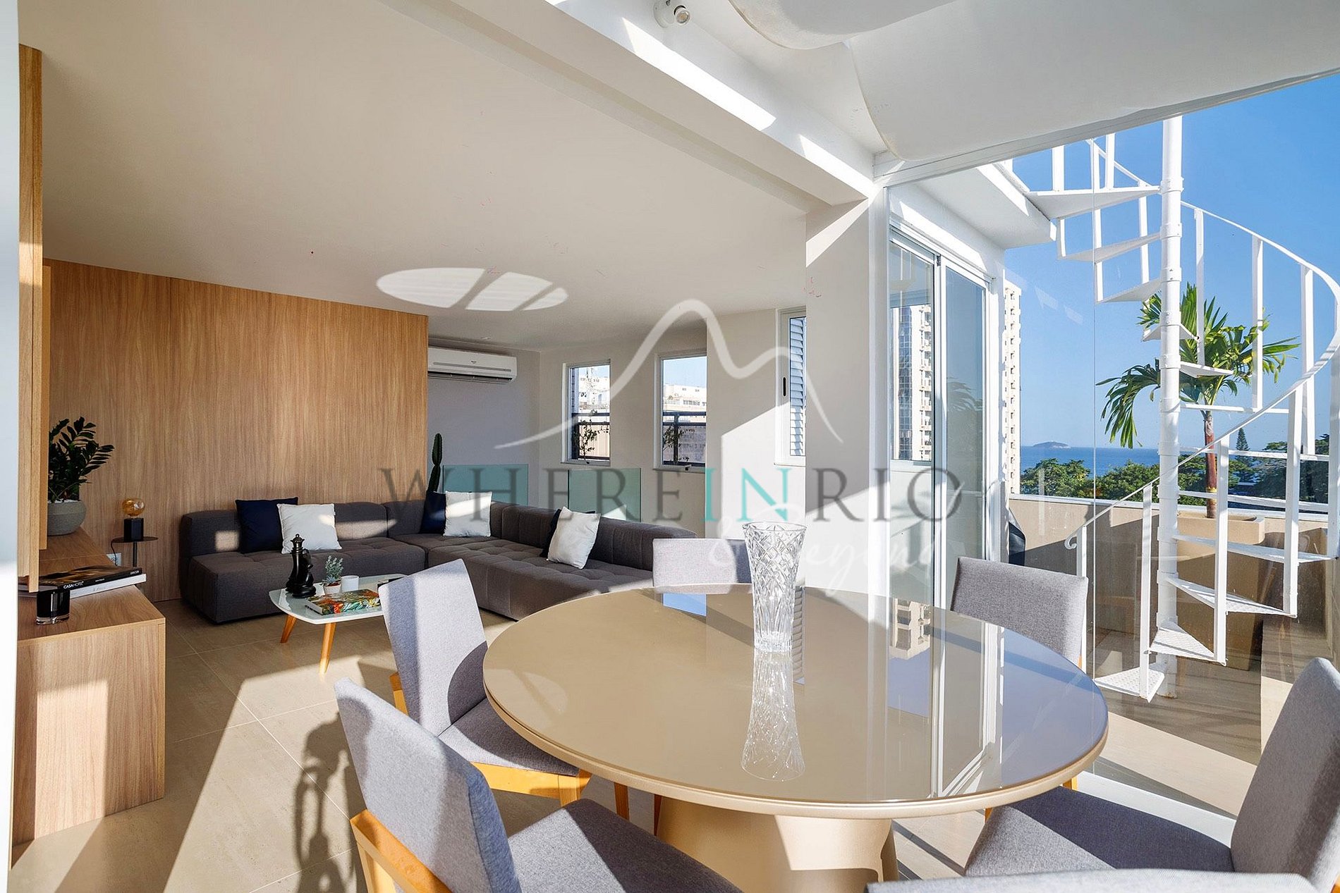 Superbe penthouse triplex de luxe avec deux suites au cœur d’Arpoador, entre Ipanema et Copacabana, offrant une vue panoramique à 360° et un jacuzzi face au Morro Dois Irmãos.