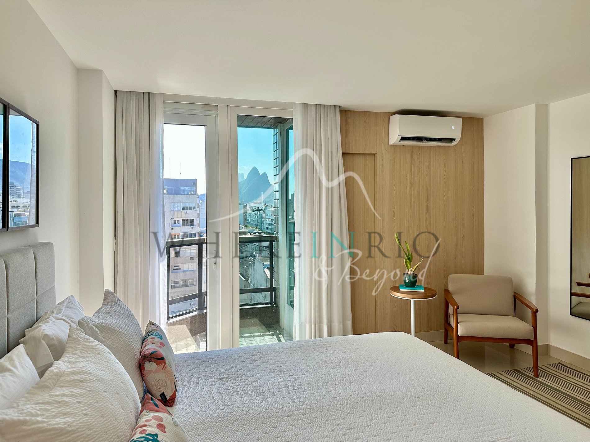 Superbe penthouse triplex de luxe avec deux suites au cœur d’Arpoador, entre Ipanema et Copacabana, offrant une vue panoramique à 360° et un jacuzzi face au Morro Dois Irmãos.