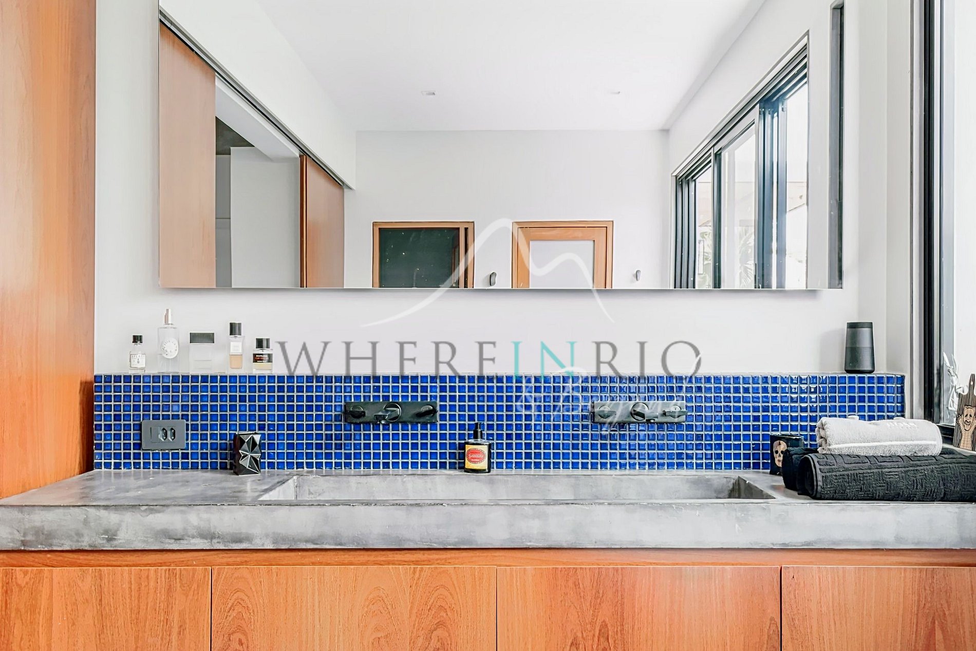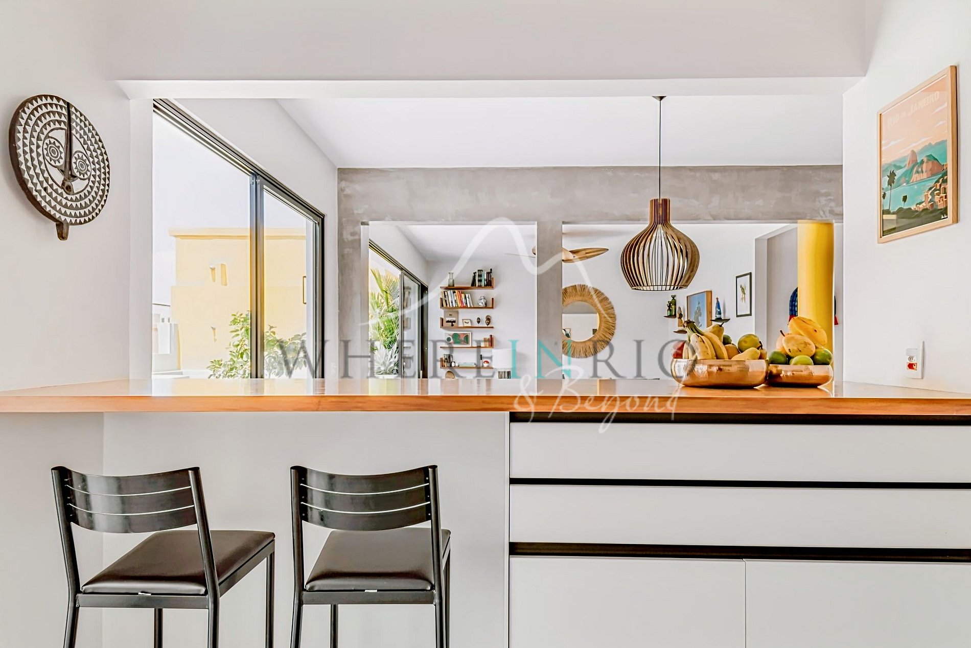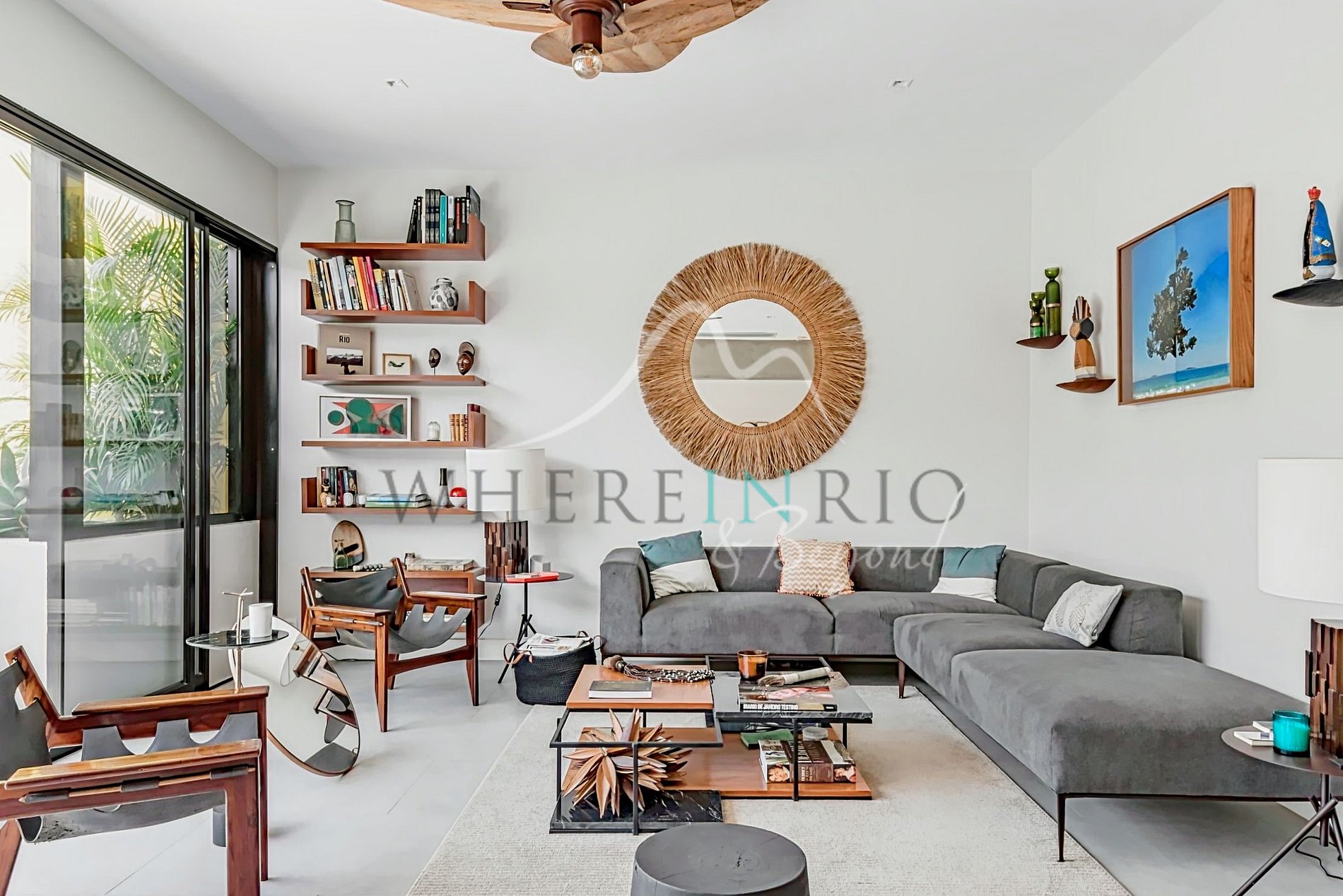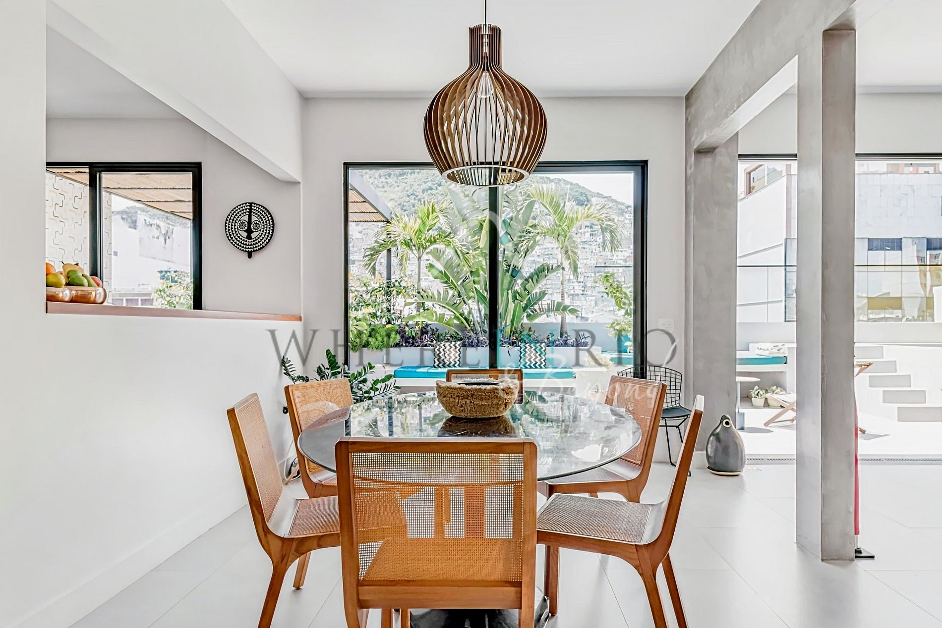 Ce penthouse moderne et lumineux offre trois chambres, dont une suite avec baignoire et vue sur la verdure. La cuisine semi-ouverte est entièrement équipée et s’ouvre sur un grand séjour et une salle à manger donnant accès à la terrasse. Celle-ci dispose d’un espace lounge et d’une piscine, créant un lieu parfait pour se détendre et admirer le ciel carioca. Décoré dans des tons clairs et naturels, l’ensemble respire la sérénité et le raffinement.