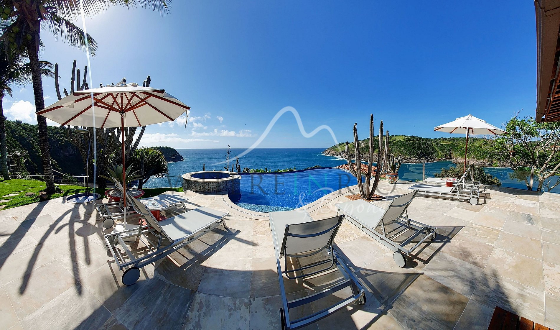 Villa de luxe de 677 m² à Búzios avec 3101 m² de terrain. Sur les hauteurs de Ferradura, elle offre l’une des plus belles vues sur l’océan, une piscine à débordement, un jacuzzi, un bar et un service hôtelier cinq étoiles.