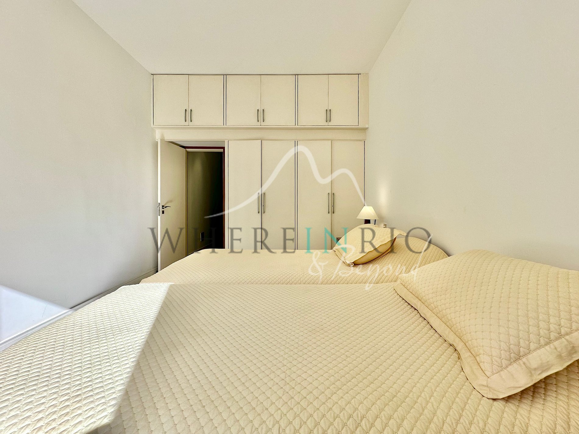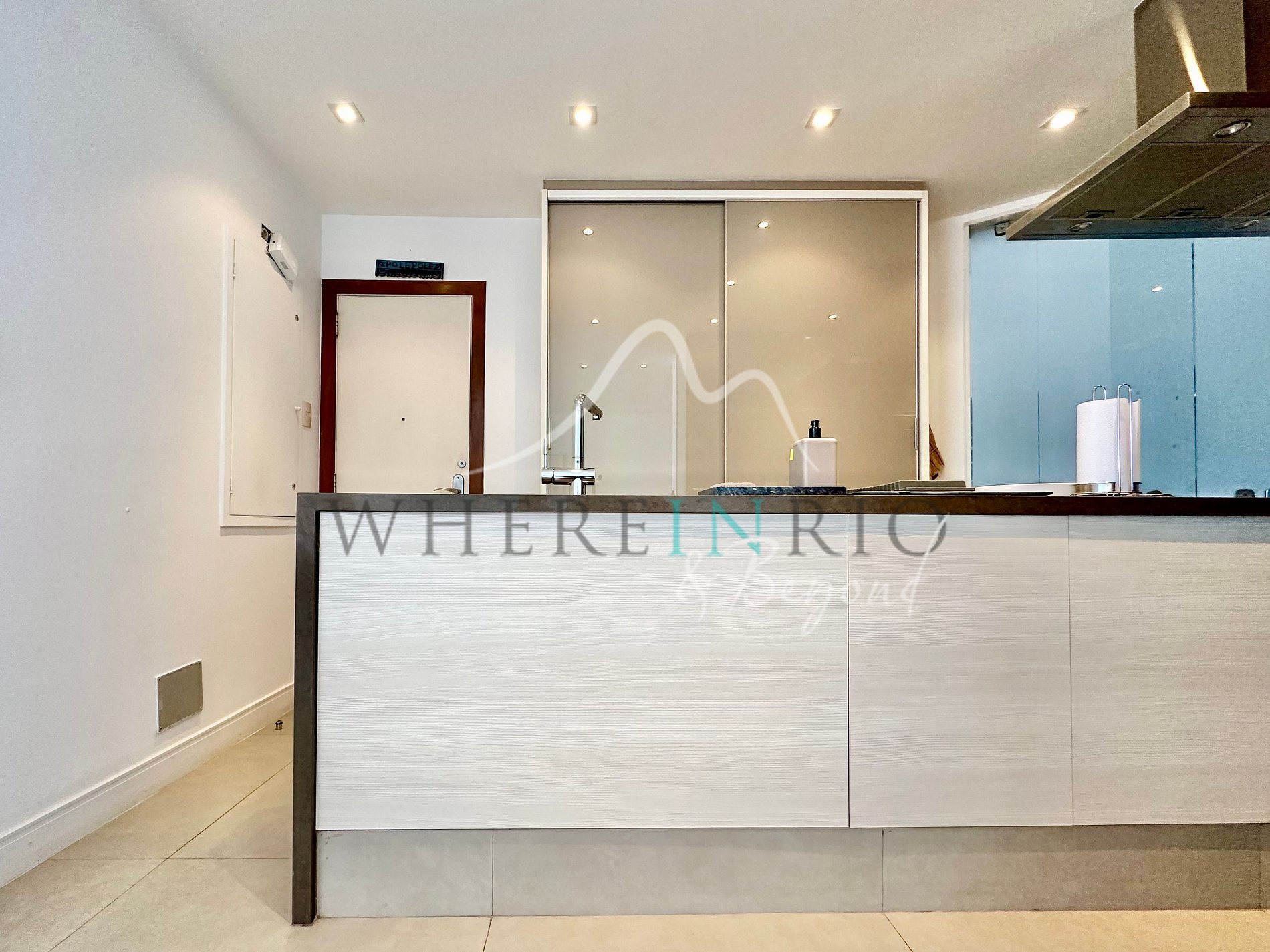 Découvrez le charme unique de cet appartement entièrement rénové en bord de mer, idéalement situé dans le quartier exclusif du Leme à Rio de Janeiro.