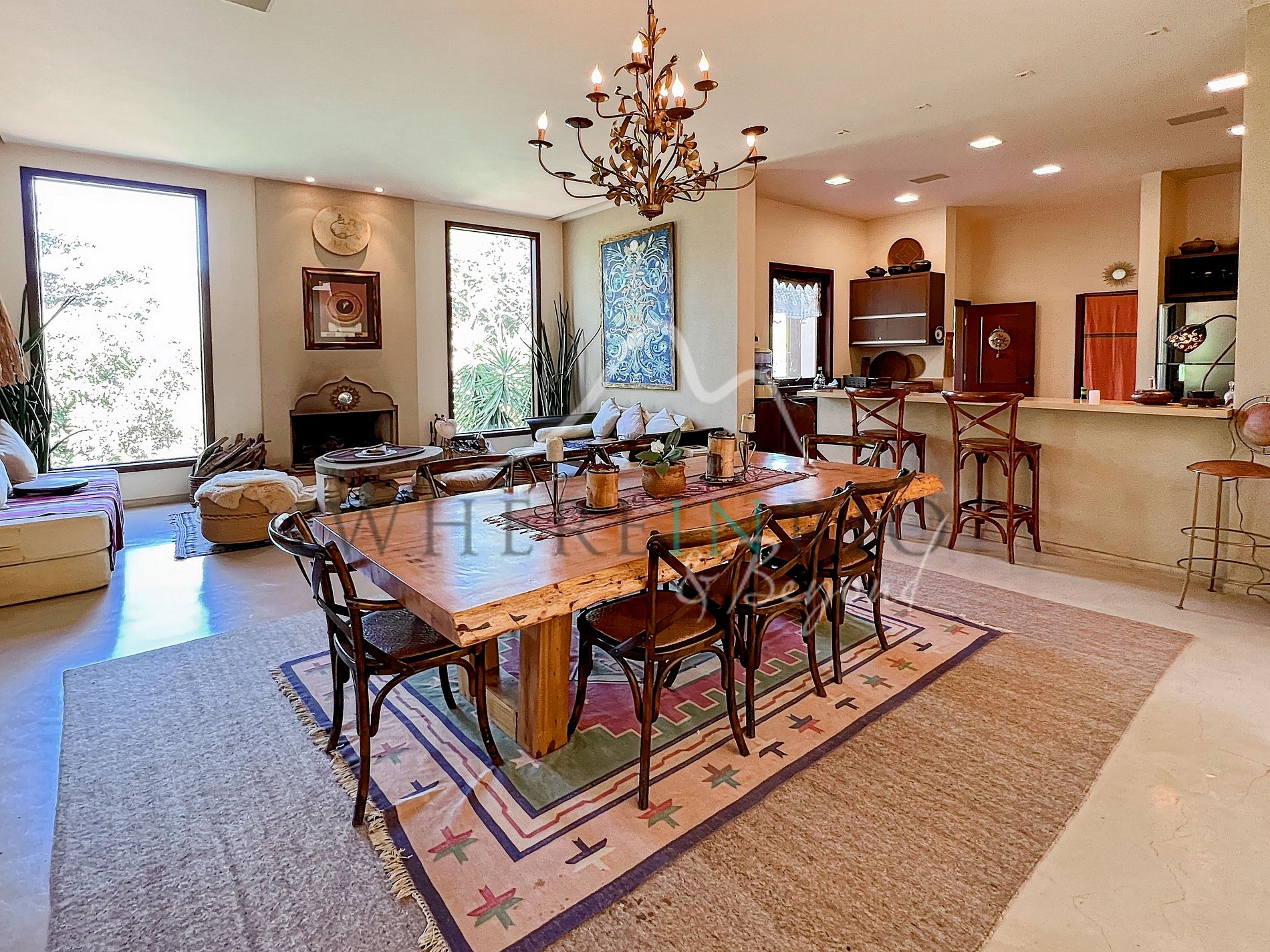 La propriété possède 2 étages. Un étage avec salle-à-manger ouverte vers une cuisine américaine équipée, 2 salons, 2 terrasses, 1 suite avec closet.