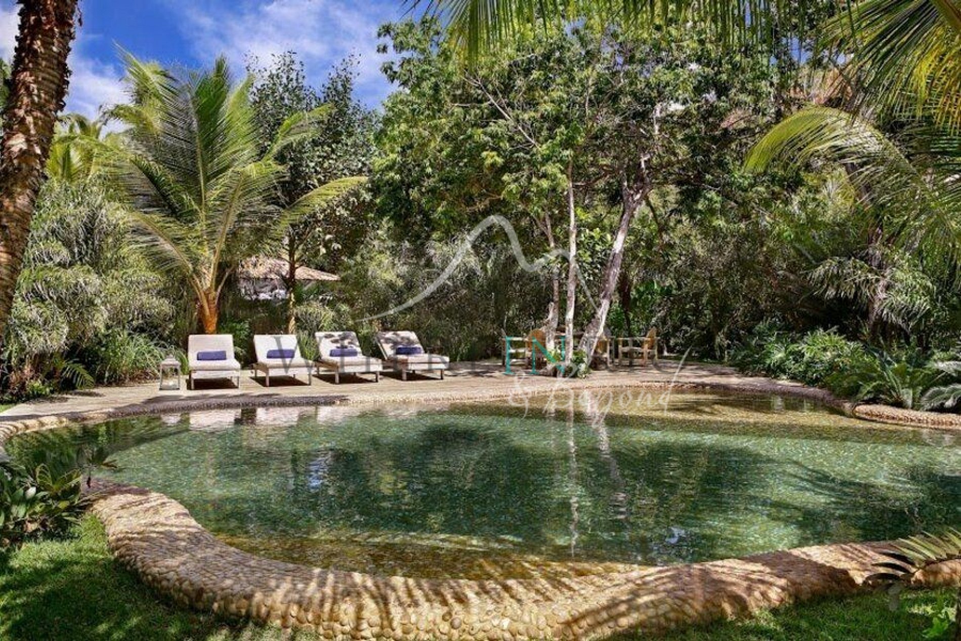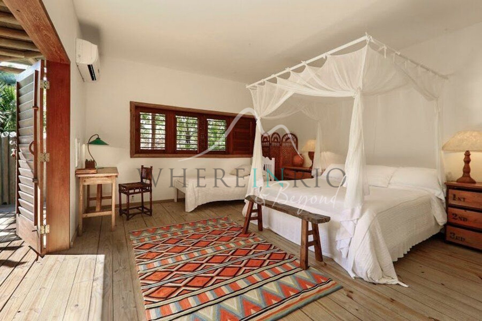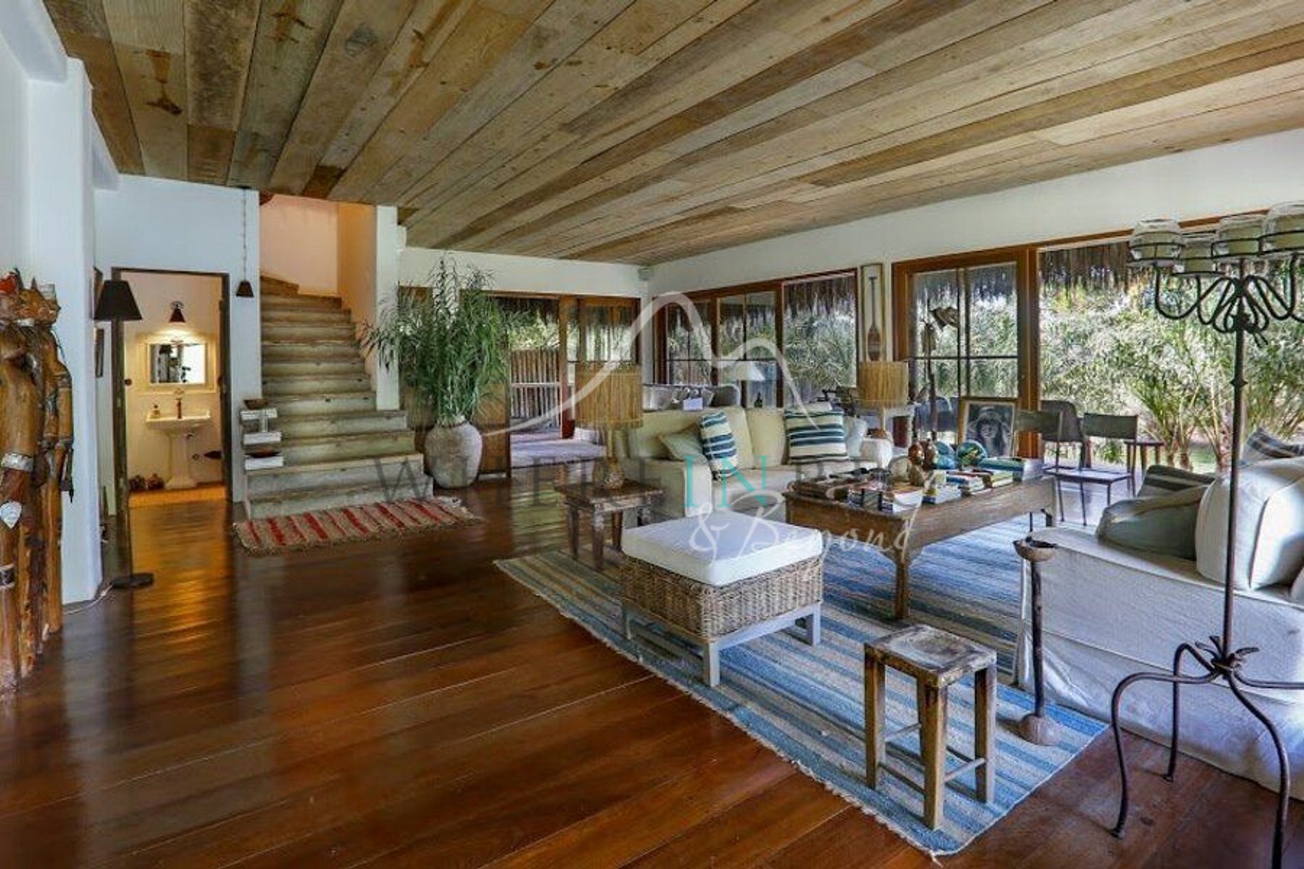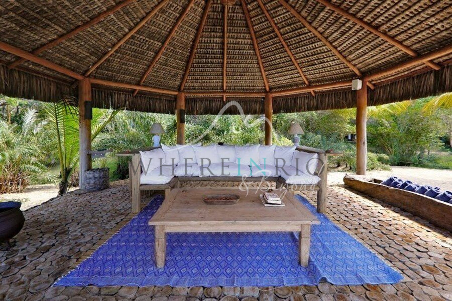 Superbe propriété de luxe à Trancoso sur 6 600 m² avec deux maisons reliées. Peut accueillir jusqu’à 12 personnes avec 5 suites, dont une master avec vue mer et jacuzzi, piscine privée, cuisine gourmet et jardin de Mata Atlântica avec piscine de pierres et douche extérieure.