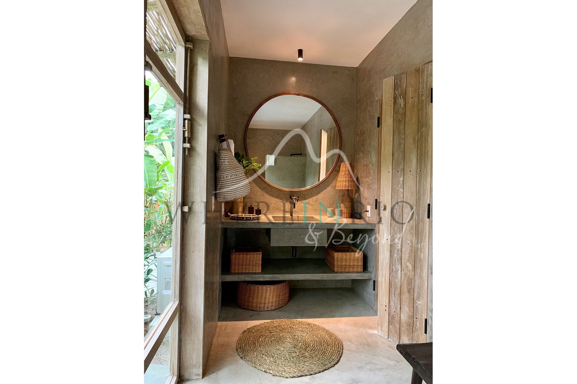 La villa de 250 m² dispose de 5 suites confortables, d’un grand espace de vie ouvert avec plafond haut, d’une piscine à débordement et d’un deck avec vue sur la nature. Chaque élément architectural (biriba, bois local) reflète un esprit boho-chic inspiré de Mykonos et Ibiza. Idéale pour 10 personnes.
