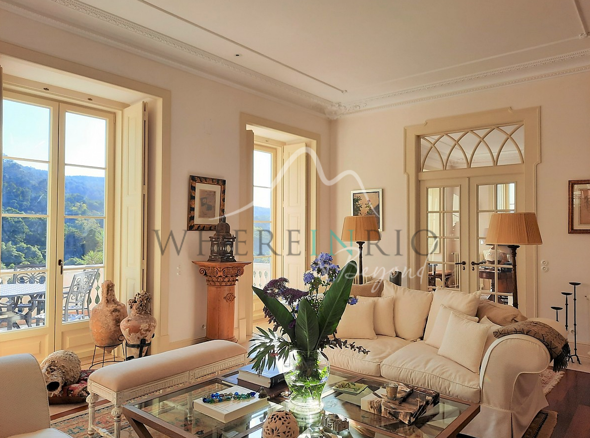 Découvrez ce palais de luxe, récemment rénové, qui a servi de point de rencontre pour des célébrités du XIXe siècle. Niché dans les collines de Sintra, à seulement 10 minutes à pied des principaux palais et à proximité des plages célèbres de la région, il offre des vues imprenables sur l'océan et une atmosphère sereine, avec des jardins luxuriants et une piscine chauffée.