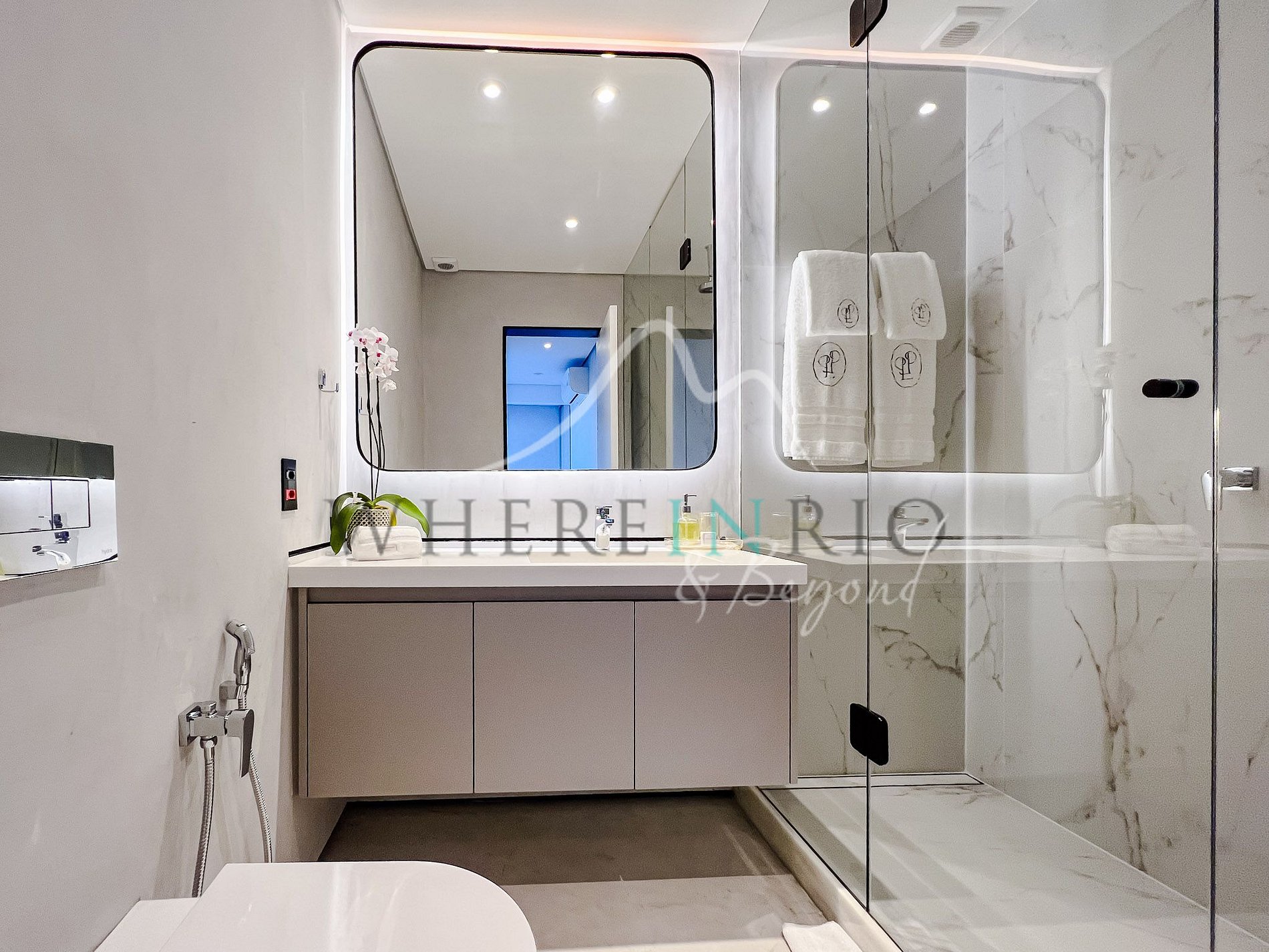 Ce penthouse duplex de luxe allie sophistication, confort et innovation. Doté de quatre suites élégantes et d’une vue panoramique sur la mer de Leblon et d’Ipanema, chaque espace a été conçu avec des matériaux de première qualité. La suite principale dispose d’un balcon privé, d’une baignoire et d’une vue imprenable. L’espace de vie comprend un grand salon ouvert sur une cuisine américaine entièrement équipée, menant à une terrasse avec piscine chauffée à débordement, jacuzzi et espace gourmet — l’endroit idéal pour se détendre ou recevoir en toute élégance.