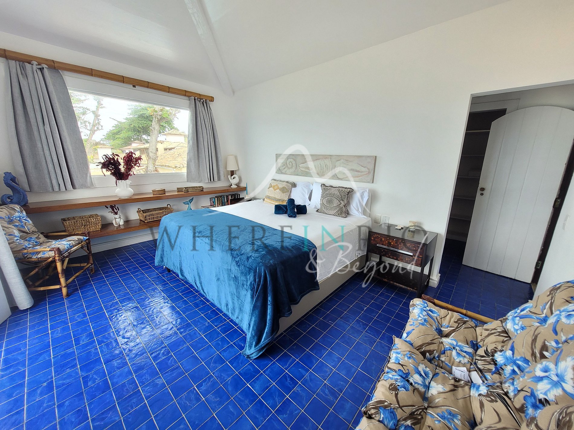 A l'étage nous trouvons la suite Master avec un lit Super King-Size, donnant sur l'océan et disposant d'une vue magnifique sur la côte de Búzios.