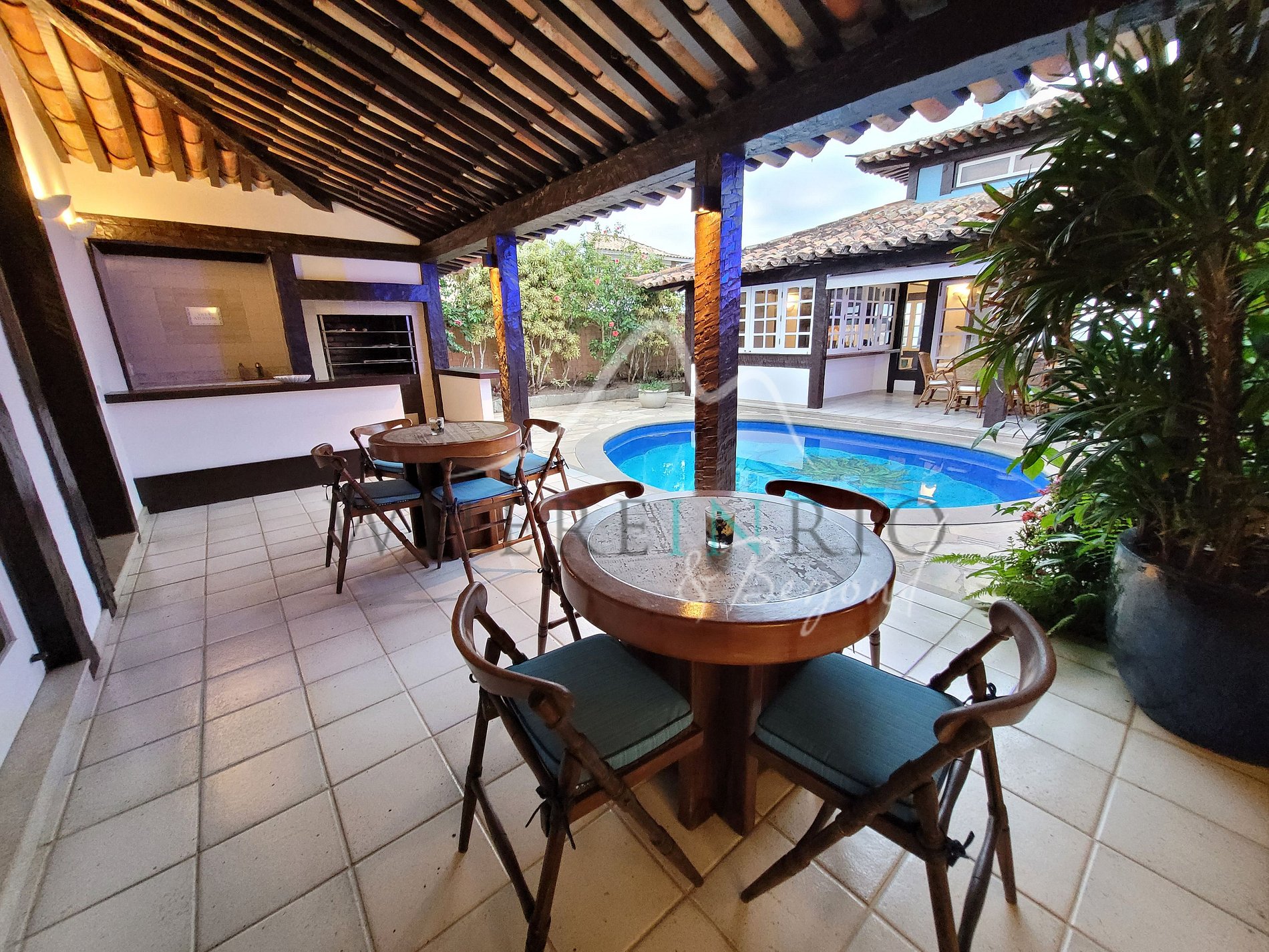Maison de 400m2 avec 900m2 de terrain, 4 suites, piscine, située en bord de mer disponible à la location saisonnière à Búzios. La maison est située à 5 minutes de la Rua das Pedras.