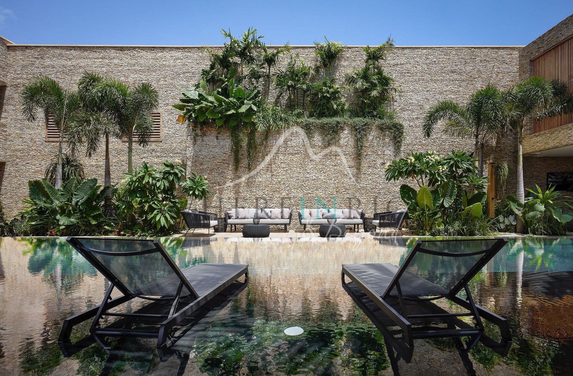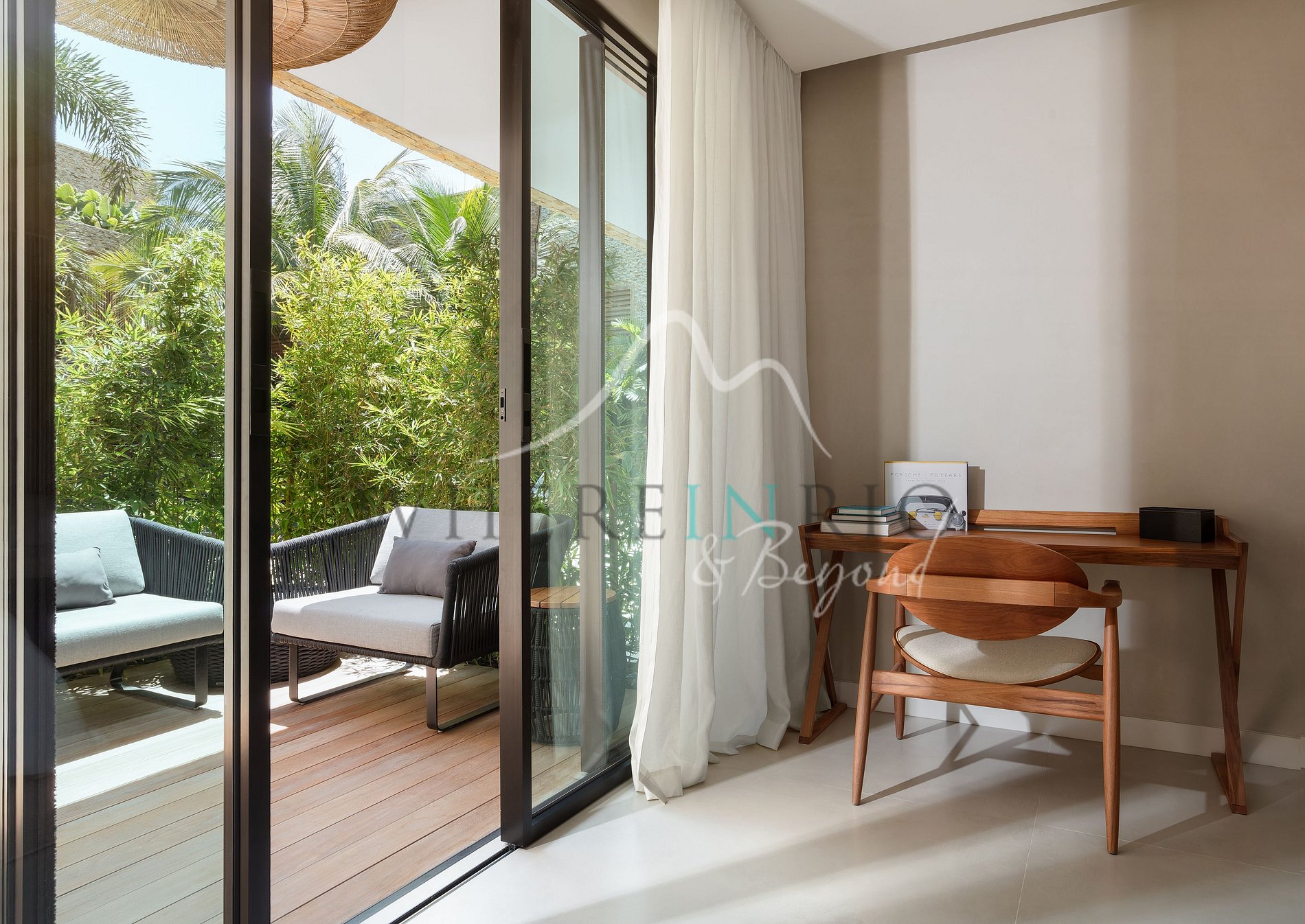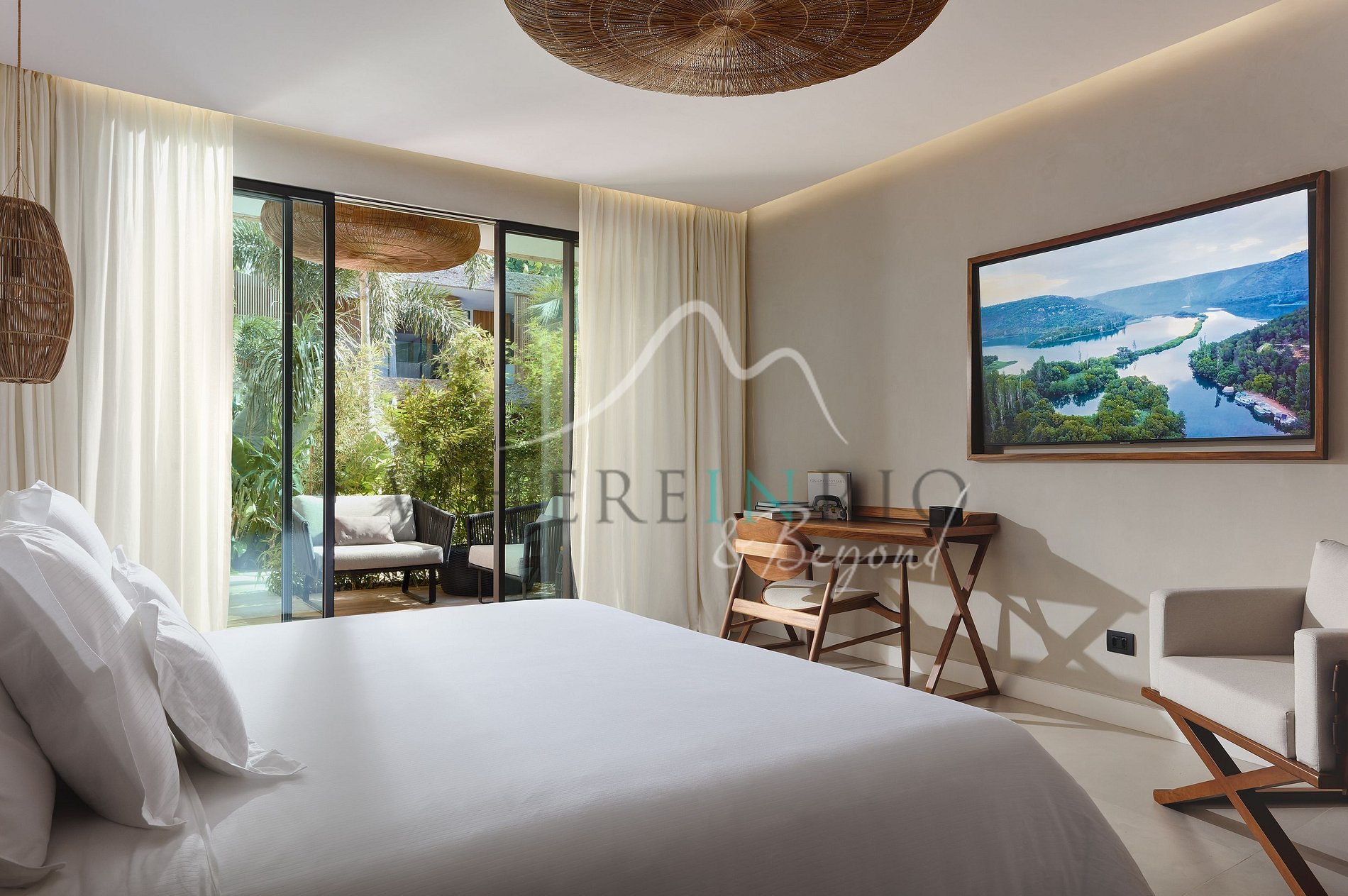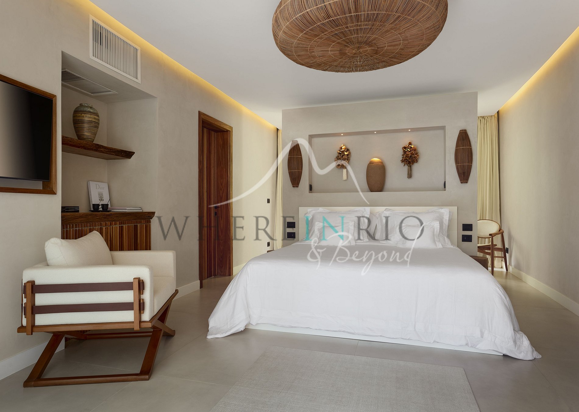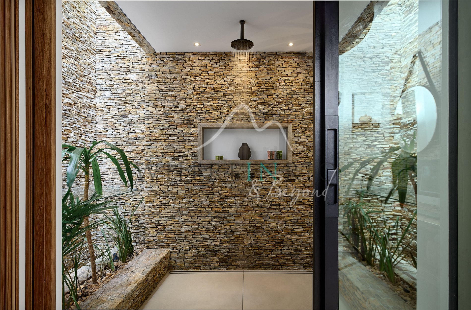 La villa comprend six suites élégantes, allant des Junior Luxe au rez-de-chaussée jusqu’à la spacieuse Suite Master de 235 m² avec rooftop privé et mini-piscine. Les rooftops offrent une vue imprenable sur le coucher du soleil et la piscine à débordement du jardin ajoute un charme unique. La décoration soignée, les matériaux rustiques et les meubles exclusifs créent une atmosphère sophistiquée et accueillante.