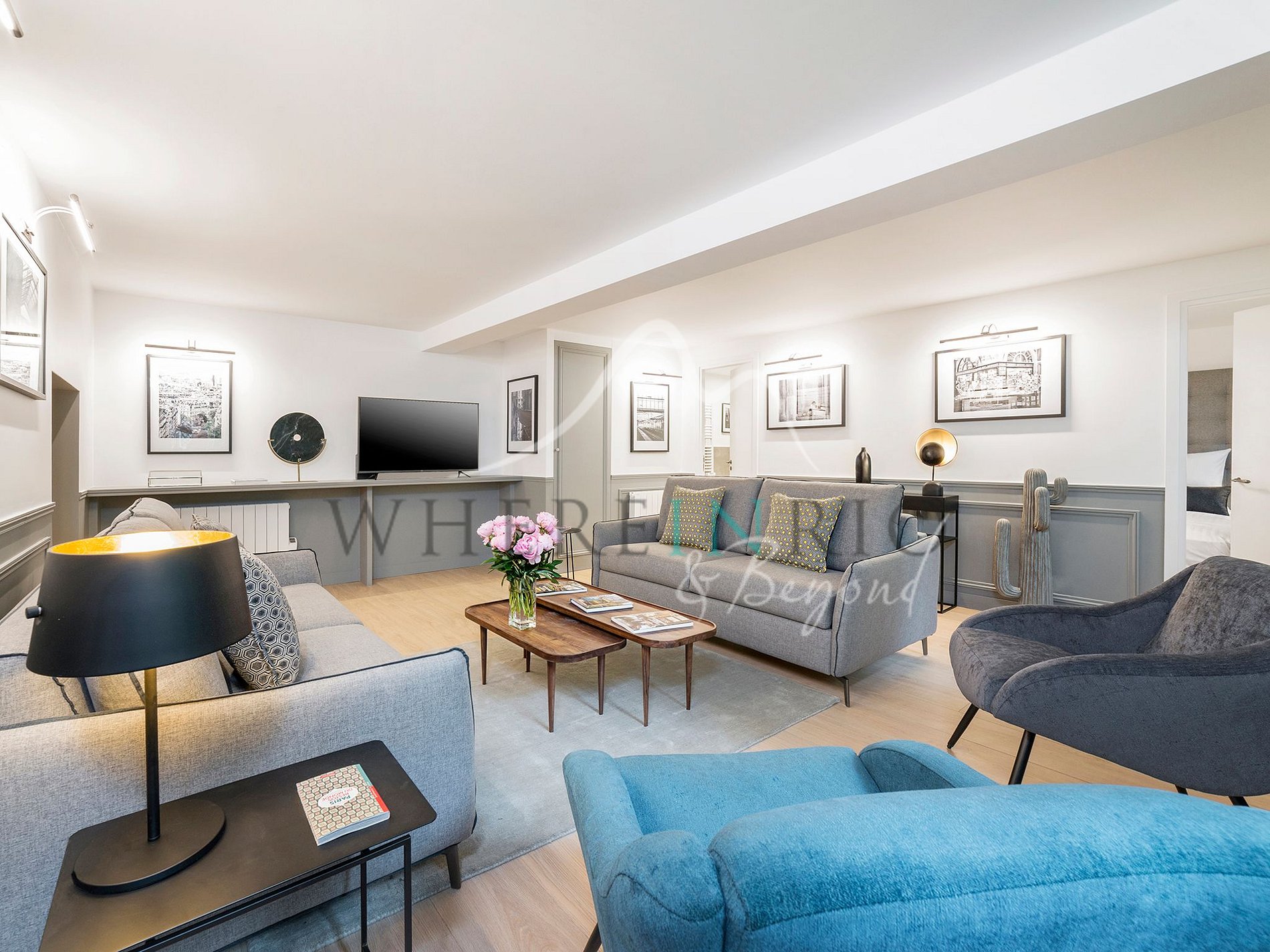 Appartement entièrement meublé de 135 m2 avec 3 chambres et 3 salles de bain pour la location saisonnière à Paris, France. Situé à seulement quelques pas des Champs-Elysées et de l'Arc de Triomphe, ce magnifique appartement parisien vous offrira un confort luxueux et chaleureux, vous donnant l'impression d'être chez vous tout en vous offrant une véritable expérience de vie parisienne.