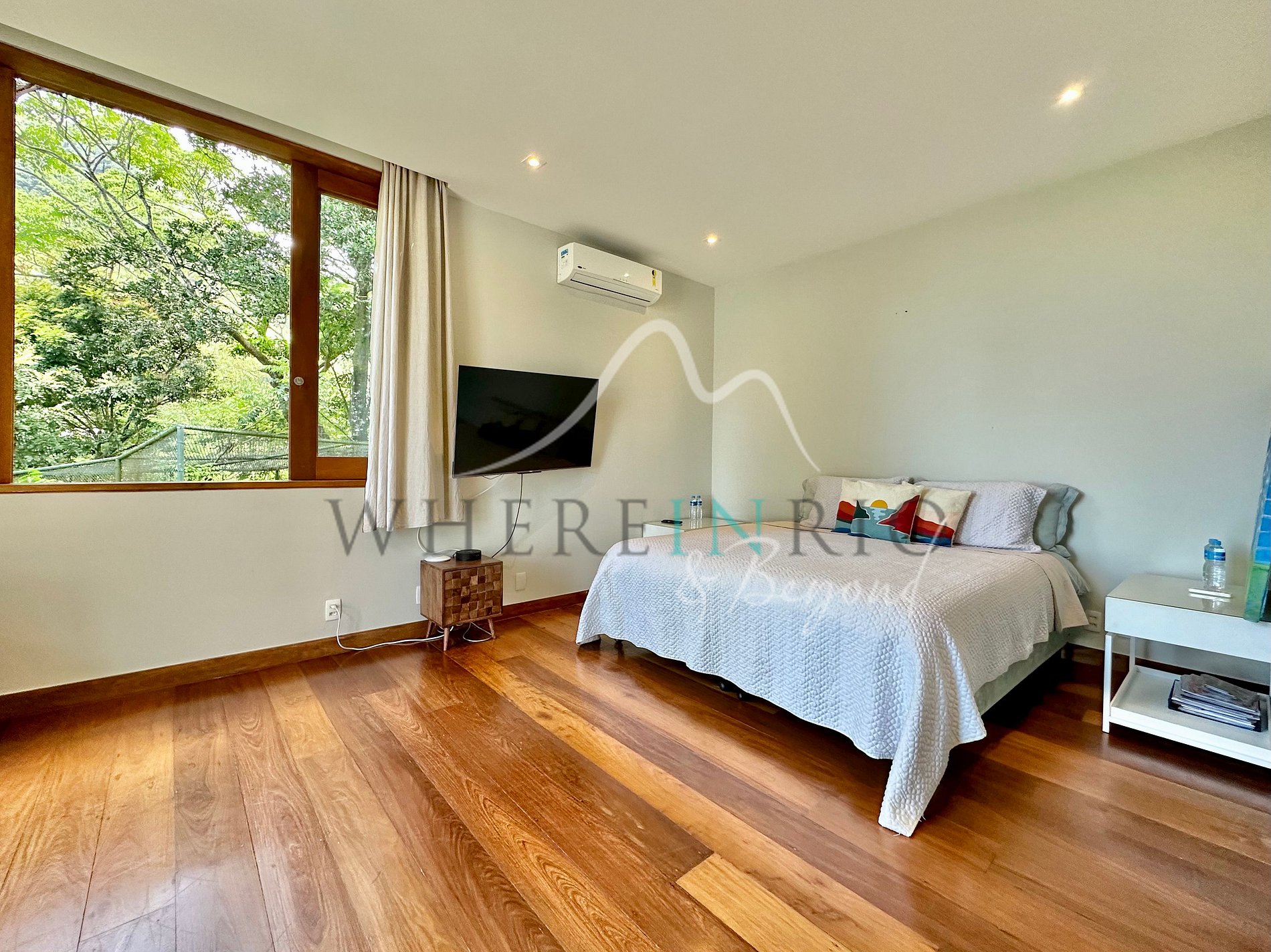 Maison de luxe dans une résidence sécurisée à São Conrado avec piscine, spa, terrasse et court de tennis — idéale pour séjours ou événements privés.