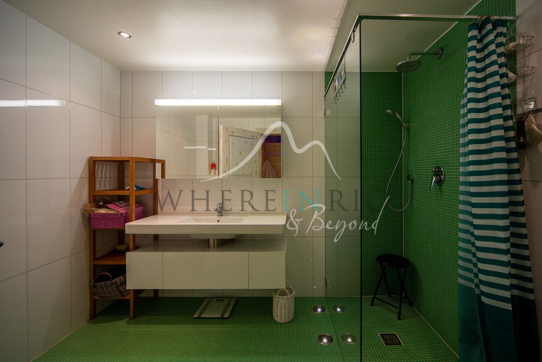 Le premier niveau inférieur comprend un grand vestiaire, une suite avec salle de bains / double garage et un local à skis.