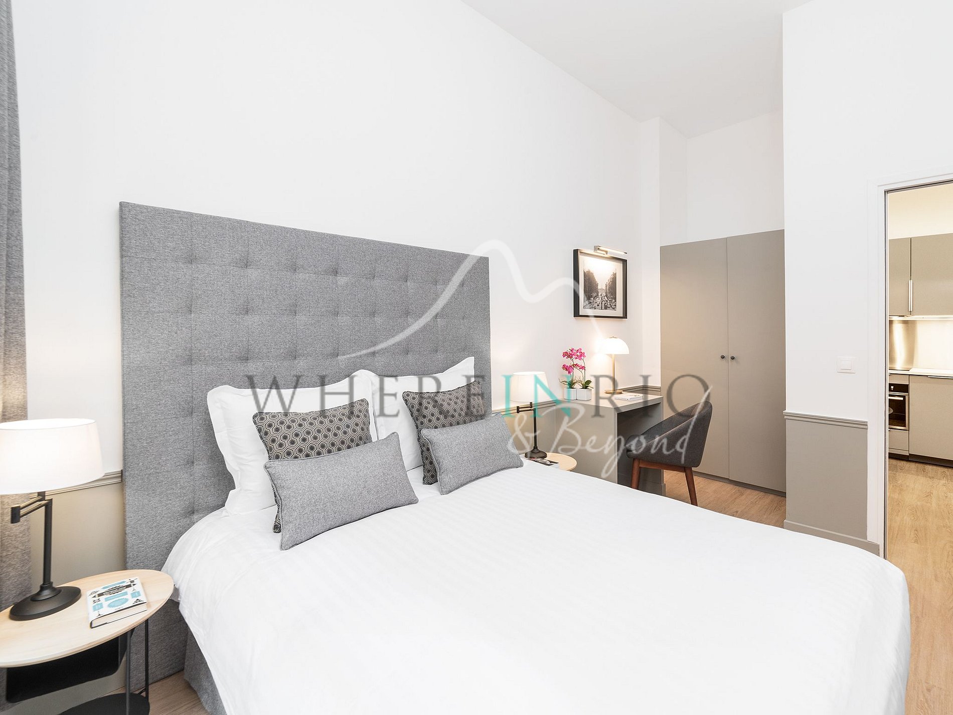 La cuisine est entièrement équipée avec un réfrigérateur, un four à micro-ondes combiné, une bouilloire, une machine à café Nespresso, un lave-vaisselle et un lave-linge séchant.
