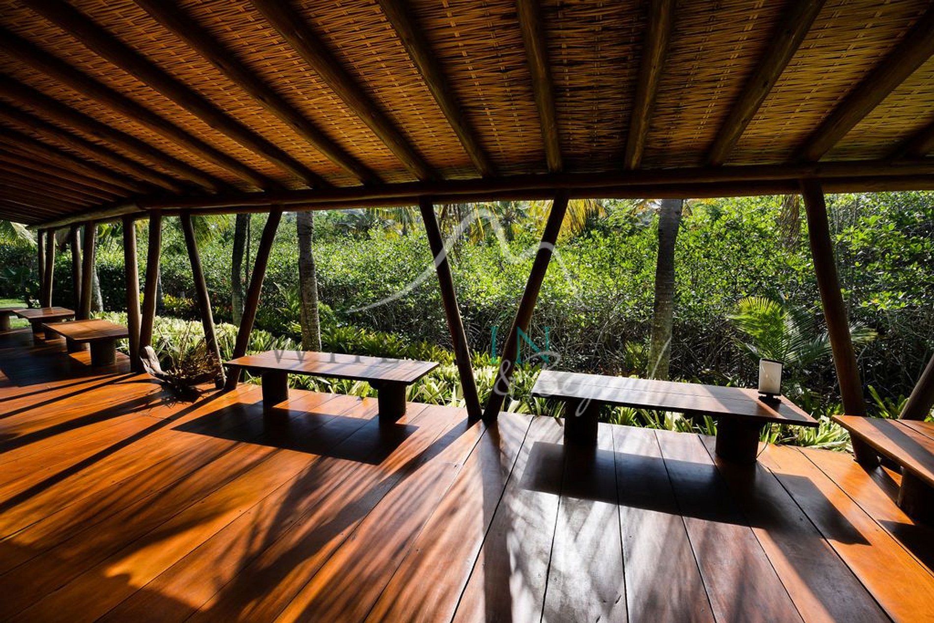Cette propriété exclusive se distingue par son architecture en bois rustique, sa décoration raffinée et son atmosphère chaleureuse. Chaque espace est pensé pour offrir une expérience immersive, entre confort, nature et design tropical signé Sig Bergamin.
