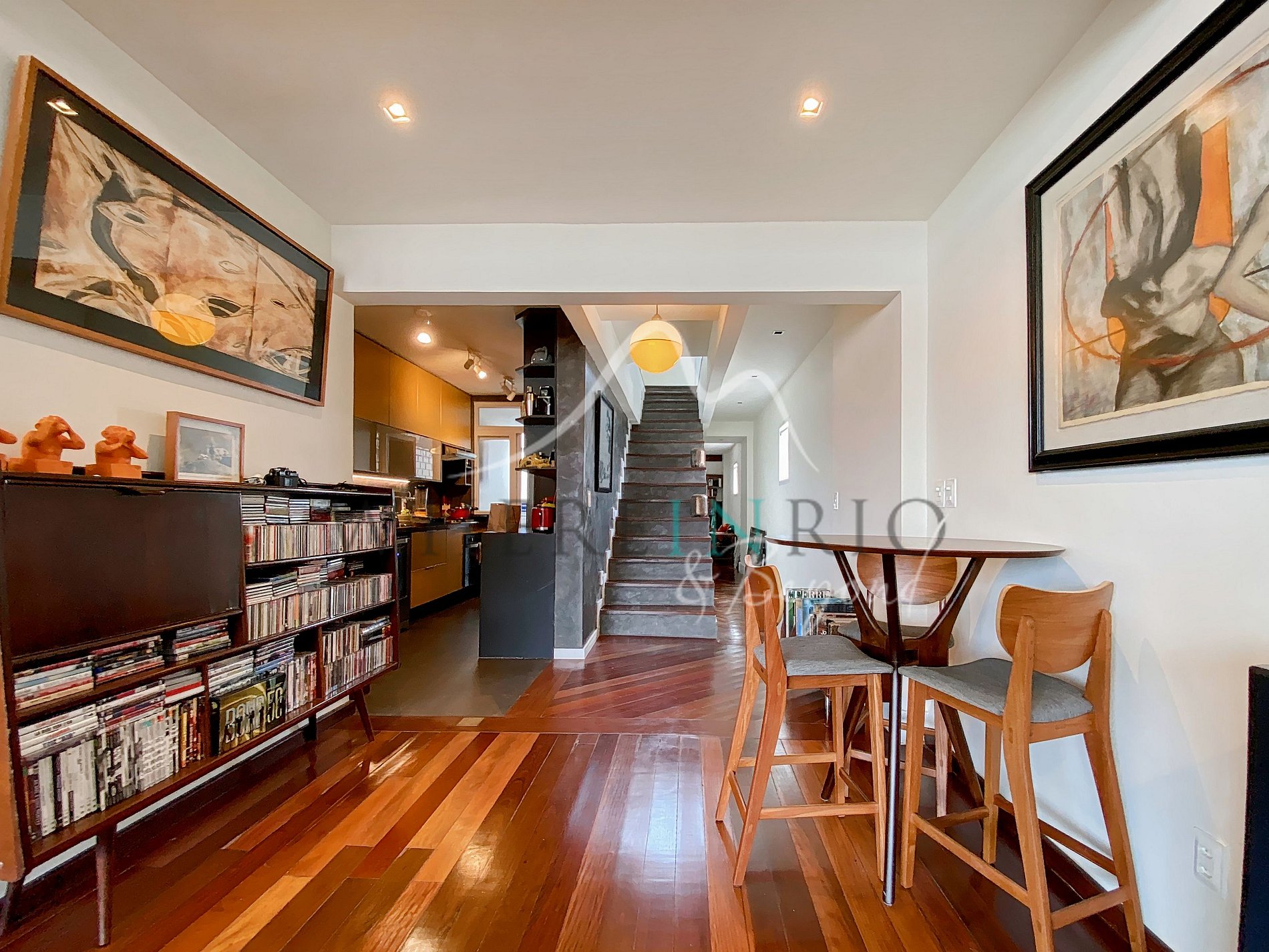 La penthouse en duplex de 190 m2 offre un espace spacieux, avec un grand salon qui s'intègre harmonieusement à la salle à manger et une cuisine moderne entièrement équipée. Un couloir mène à un espace de bureau et à deux suites tout aussi spacieuses, chacune avec sa propre salle de bain.