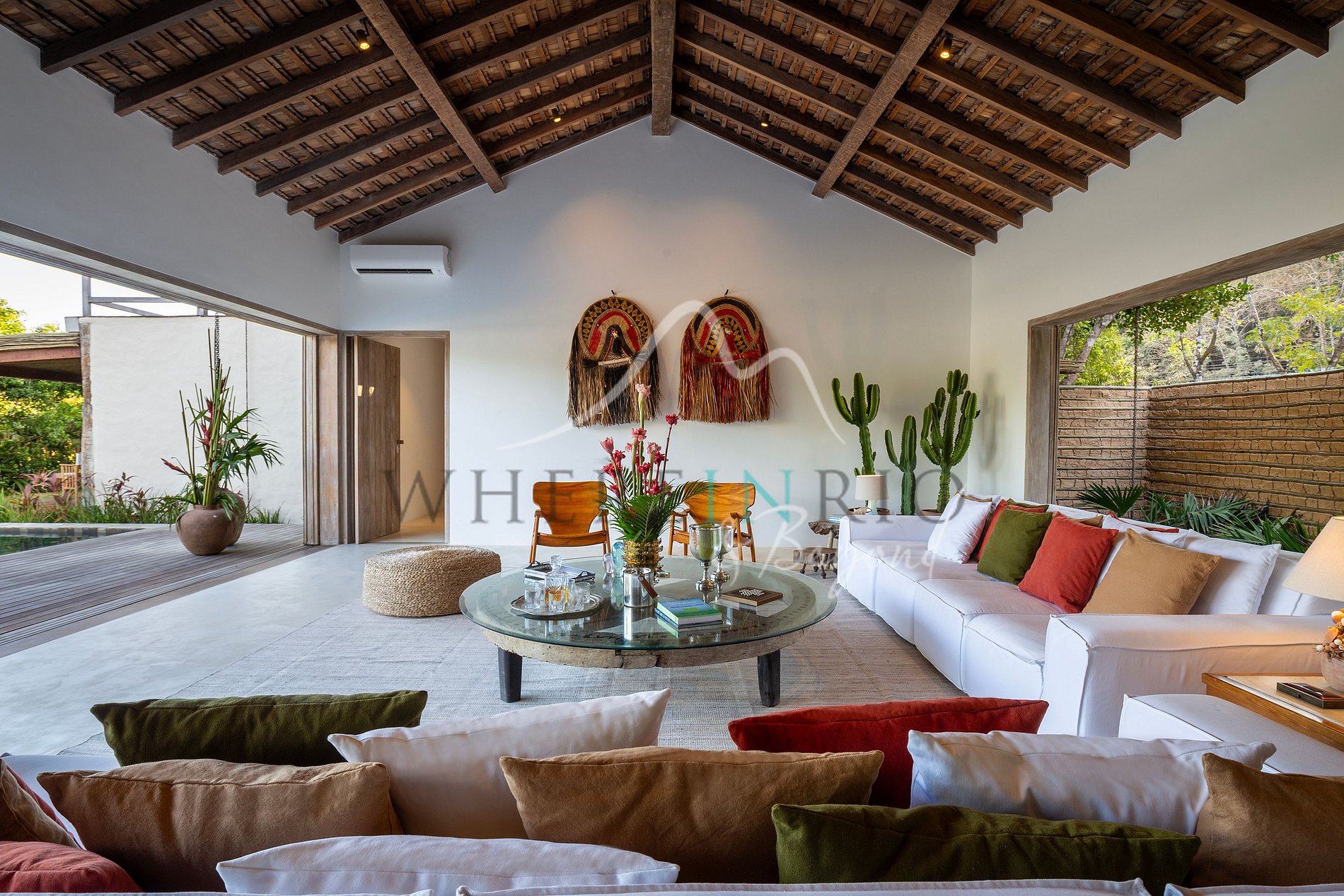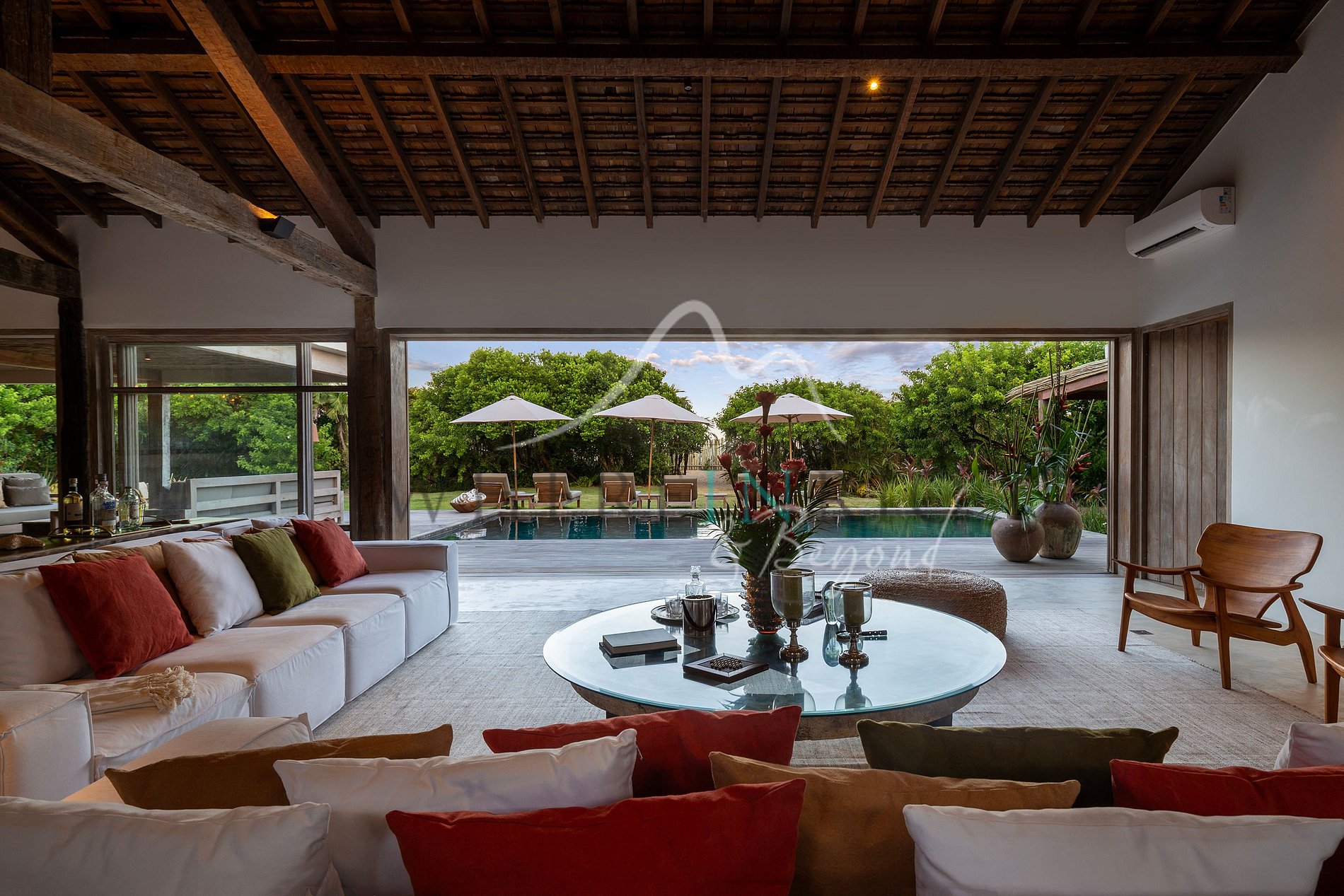 Casa Aroeira é uma luxuosa casa em Trancoso com 6 suítes, piscina privativa, churrasqueira, vista para o mar, rodeada pela Mata Atlântica, próxima à praia Itapororoca.