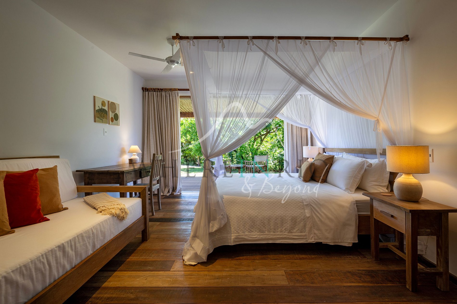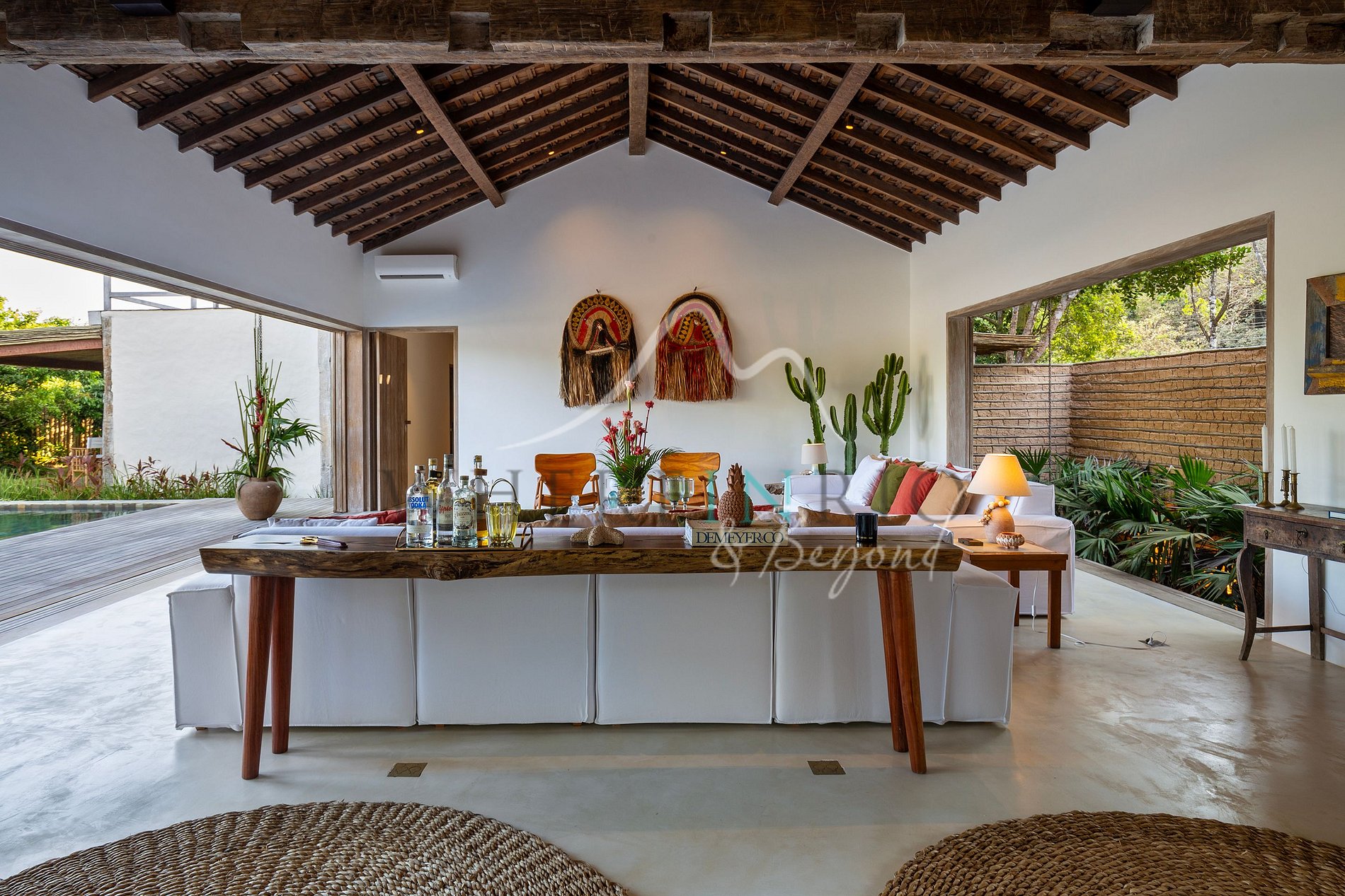 Casa Aroeira é uma luxuosa casa em Trancoso com 6 suítes, piscina privativa, churrasqueira, vista para o mar, rodeada pela Mata Atlântica, próxima à praia Itapororoca.