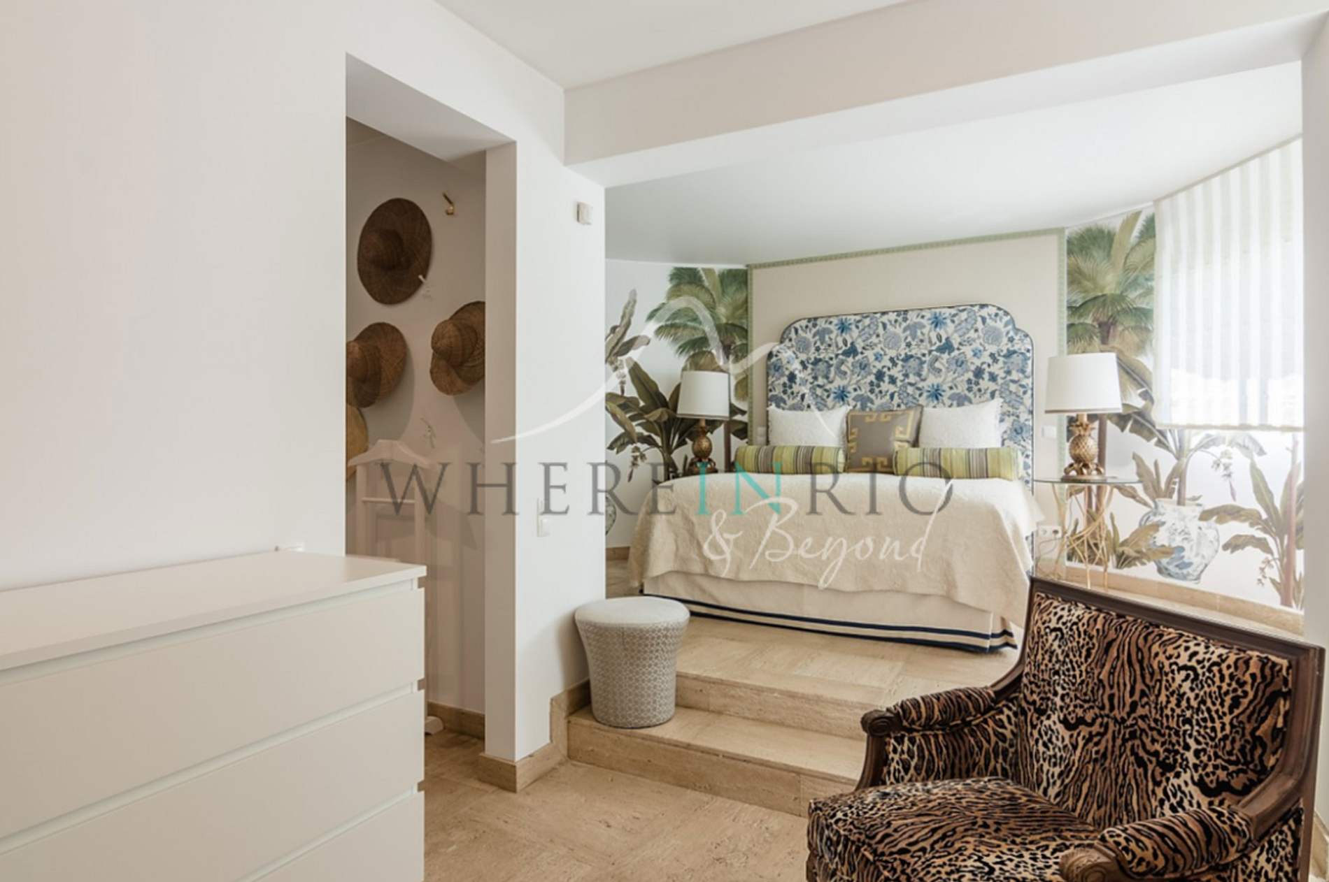 Projetada por um designer de interiores internacional, a Villa Estoril Decor exala sofisticação e atenção aos detalhes. Estampas e cores ousadas complementam acabamentos em mármore chiques e mobiliário clássico elegante, com murais de parede peculiares e obras de arte marcantes adicionando um toque divertido. Cada quarto exibe elementos de design únicos, com banheiros excepcionais ostentando designs de azulejos ousados e esquemas de cores fortes.