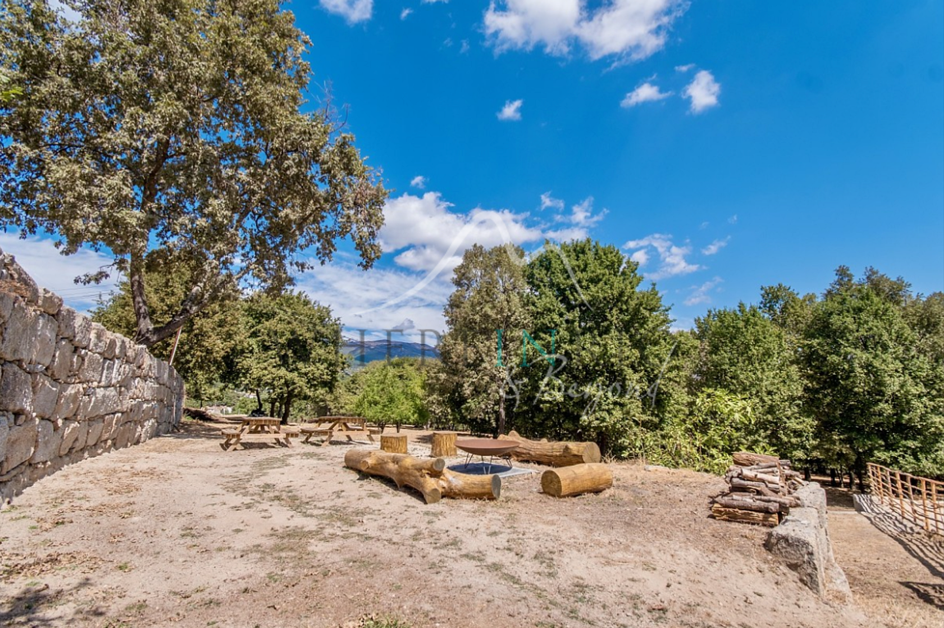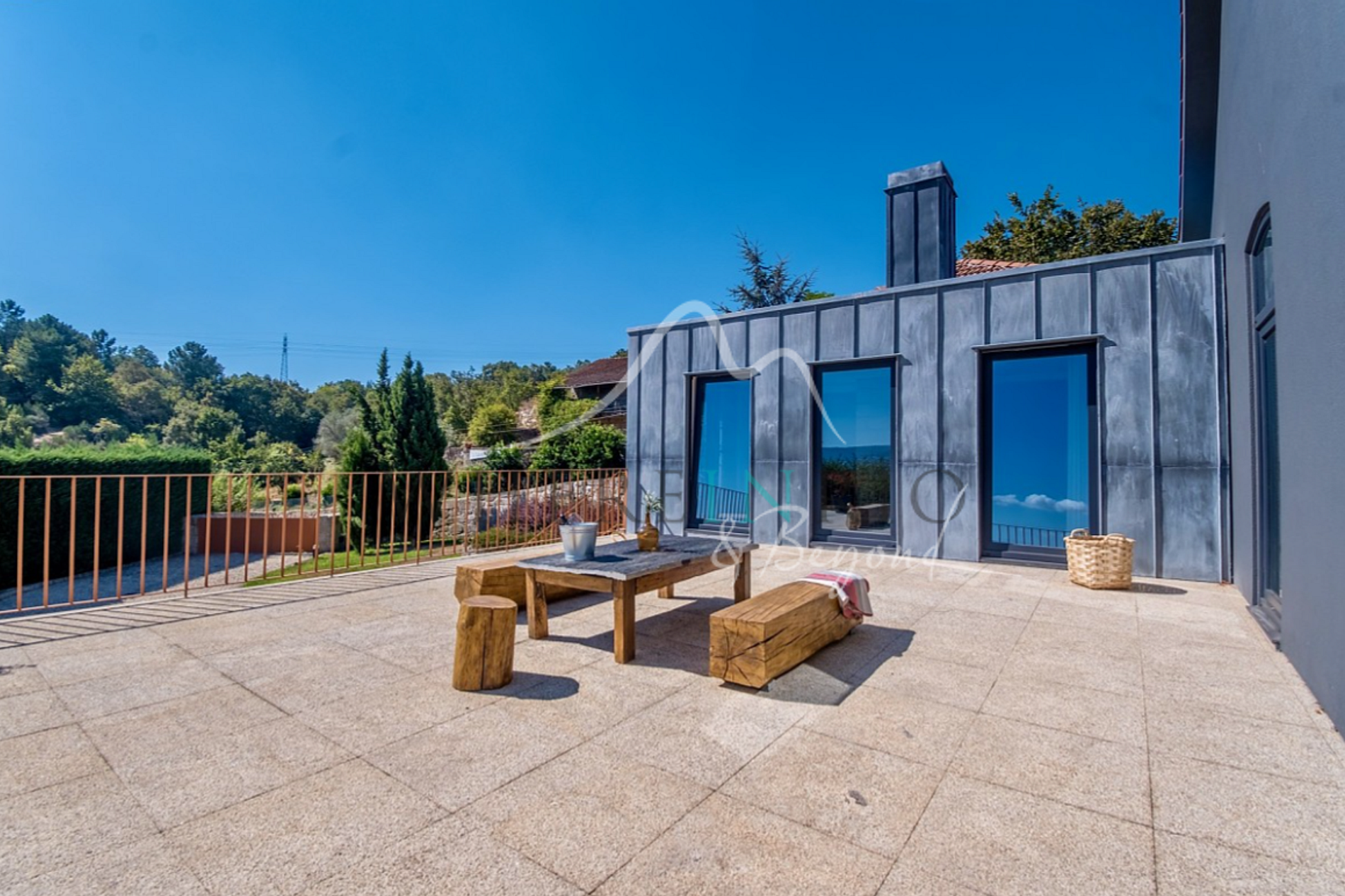 A casa da piscina, que combina habilmente o interior e o exterior com suas portas de correr e claraboias, proporciona uma conexão serena com a natureza. Vários locais isolados, incluindo uma área de estar ao ar livre em terraço e uma varanda, oferecem ambientes idílicos para desfrutar de um café pela manhã ou de um copo de vinho à tarde.