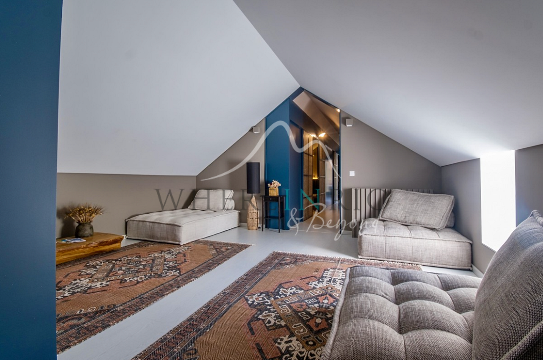 A fazenda convertida exala charme com suas paredes exteriores azuis e brancas, suas amplas suítes master e seus quartos adicionais que acomodam confortavelmente até catorze pessoas. Distribuído em três pisos, o interior conta com confortos modernos, como ar-condicionado, WiFi, roupas de cama luxuosas e banheiros elegantes, mantendo ao mesmo tempo um ambiente aconchegante. Os hóspedes podem desfrutar de uma experiência de spa com a jacuzzi e a sauna, e degustar ovos e leite fresco da fazenda local Maronesa, juntamente com um serviço de limpeza diário. A Fazenda de Luxo do Douro oferece a base perfeita para uma variedade de atividades, desde degustações de vinho até oficinas de cerâmica, tudo facilmente organizado pelo serviço de concierge para uma estadia inesquecível.
