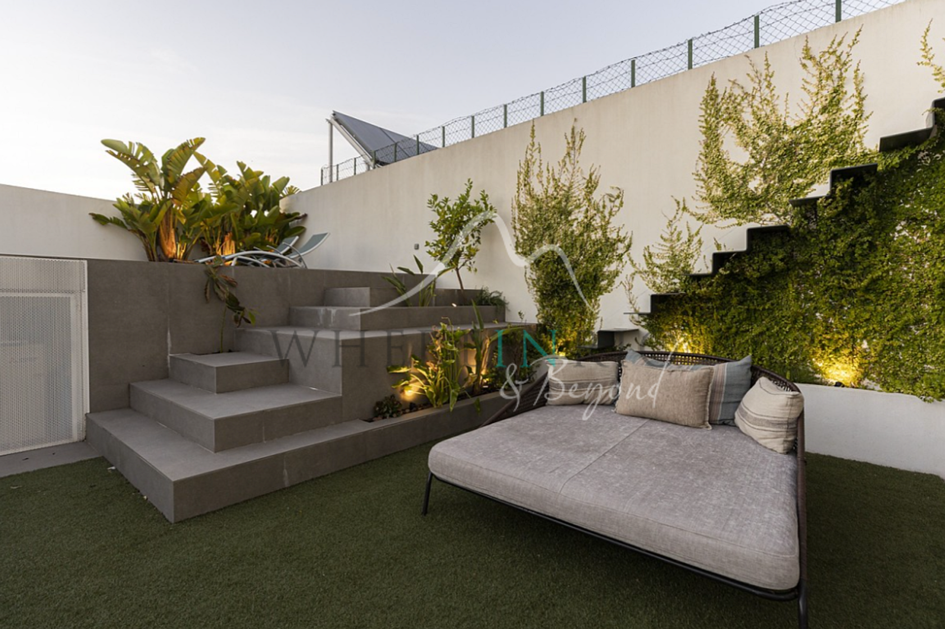 O exterior do apartamento é absolutamente deslumbrante; um pequeno jardim gramado leva a alguns degraus que fluem para a peça principal, a piscina. Também há espreguiçadeiras posicionadas no terraço com vista para a piscina, com belos detalhes de azulejos; o lugar perfeito para relaxar depois de um dia agitado explorando a cidade. Há uma mesa de jantar ao ar livre e uma churrasqueira, bem como uma rede suspensa sobre o jardim, verdadeiramente única. O apartamento com piscina em Lisboa também possui um serviço de limpeza diário para que você nunca precise mexer um dedo durante sua estadia.
