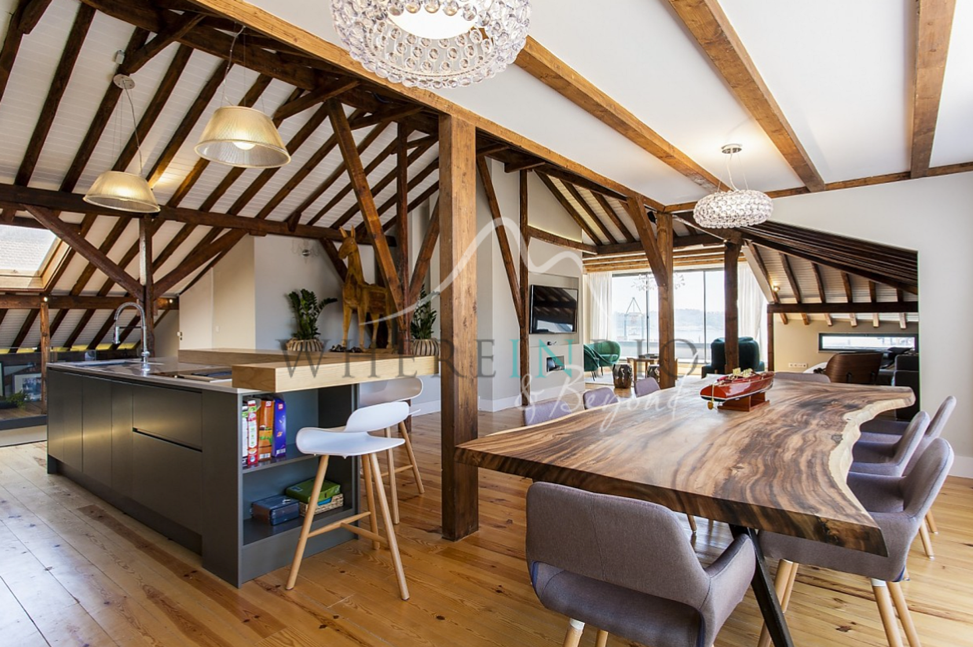 A espaçosa área de estar transita perfeitamente para a sala de jantar e cozinha, todas envolvidas por portas de correr expansivas que dão acesso às duas varandas. Este espaço convidativo é perfeito para desfrutar de cocktails ao pôr do sol e saborear a deliciosa culinária portuguesa.