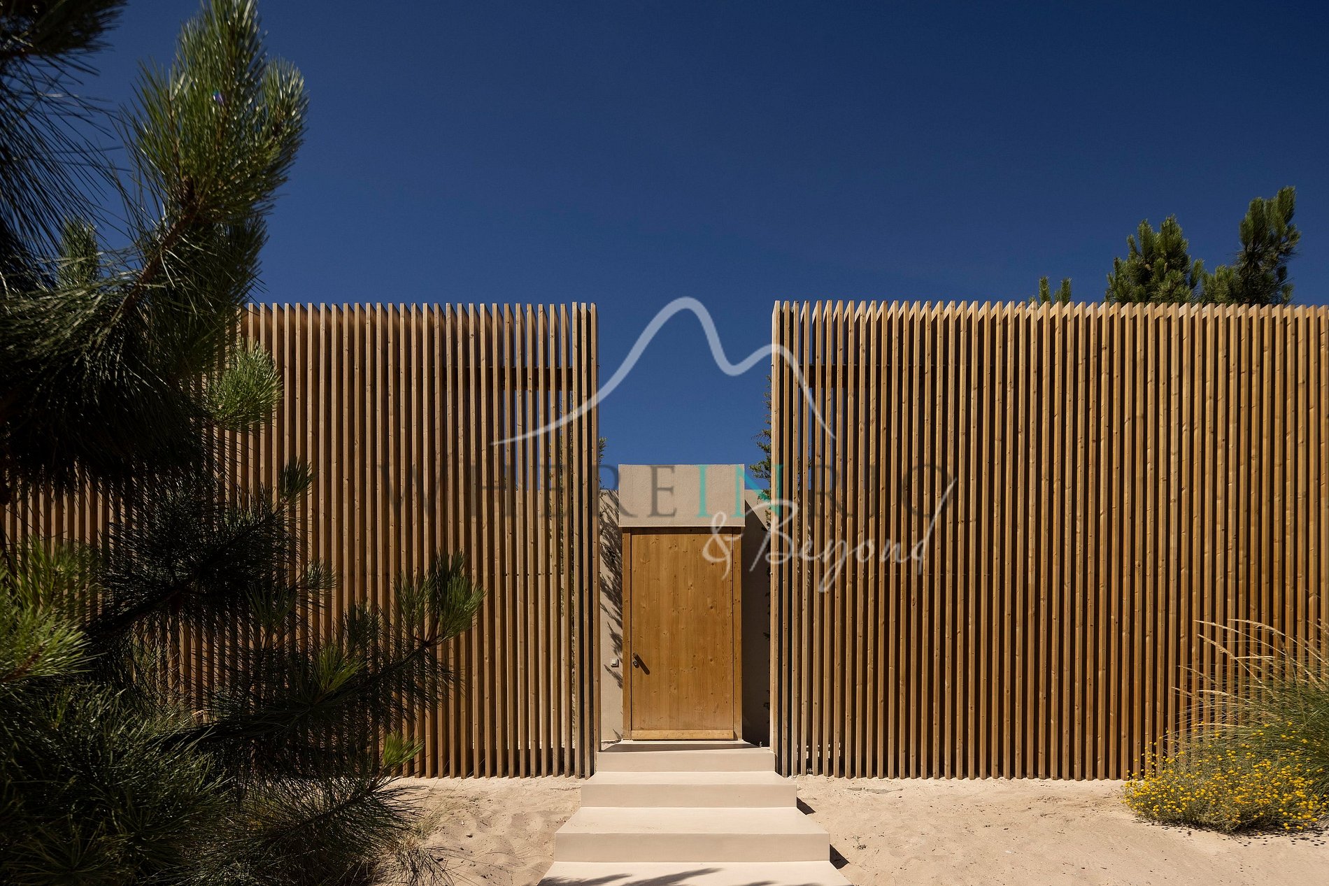 Ocupando uma área de 400 metros quadrados está situada no topo das dunas, no meio de uma floresta mediterrânea. O design inclui quatro jardins internos que trazem a natureza para dentro da casa. Uma cozinha de plano aberto, sala de estar e jantar oferecem vista para um pátio ao ar livre e para a piscina.