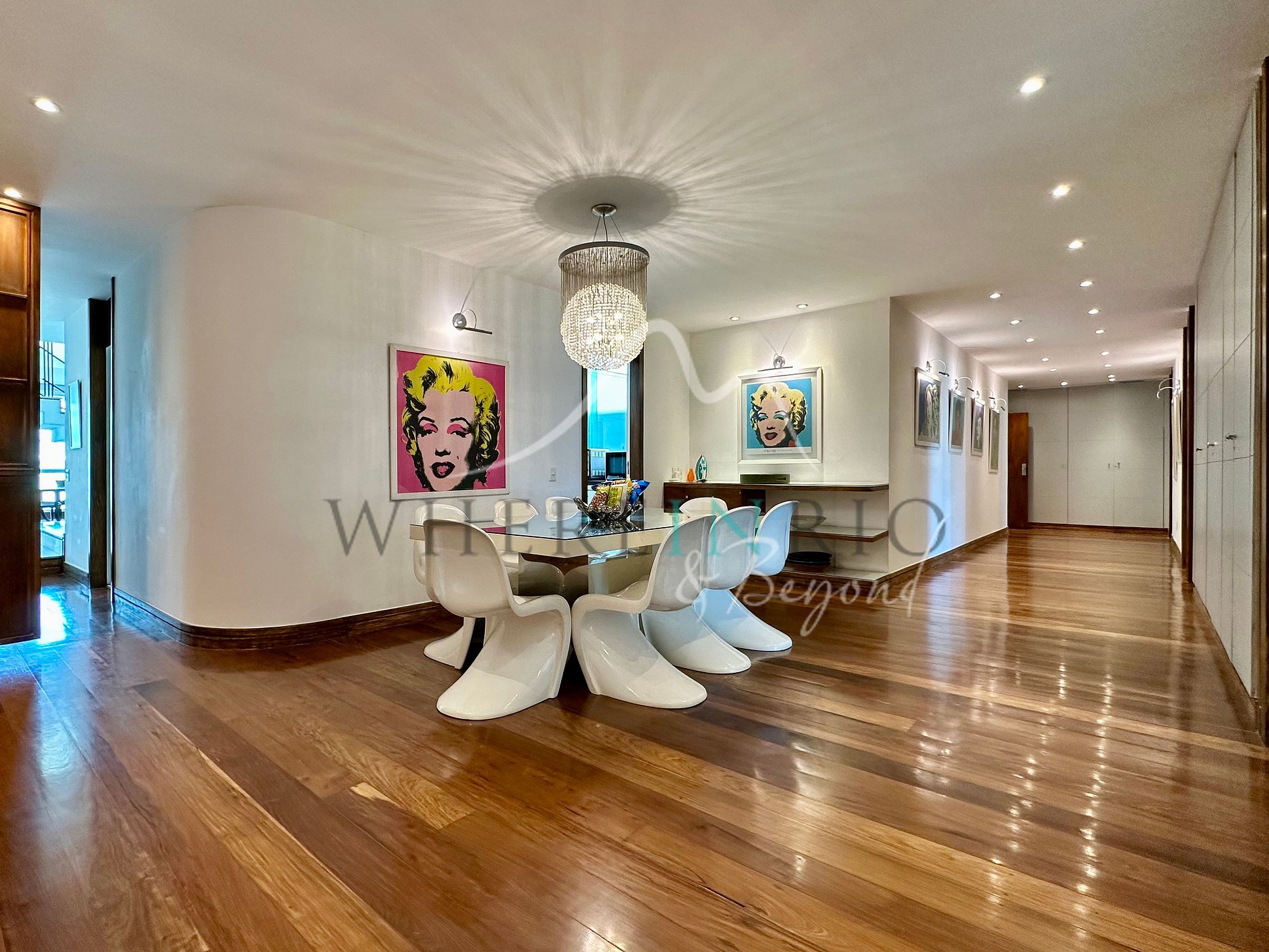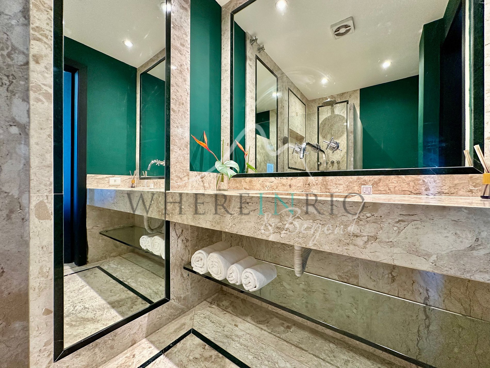 Esta cobertura duplex de luxo em Copacabana oferece elegância, espaço e uma vista excepcional para o mar. No primeiro andar, há quatro suítes sofisticadas, duas salas de jantar, uma sala de TV, um escritório e uma cozinha totalmente equipada. No segundo andar, a deslumbrante suíte master conta com um banheiro luxuoso com banheira de hidromassagem, chuveiro e closet, com acesso direto ao terraço e uma vista de tirar o fôlego para a Praia de Copacabana. O destaque da propriedade é a piscina de 12 metros com vista para o Cristo Redentor e uma sauna relaxante — o cenário ideal para aproveitar o pôr do sol do Rio em total privacidade. Com peças assinadas por Starck e Le Corbusier, esta cobertura combina sofisticação atemporal e o espírito vibrante da cidade.