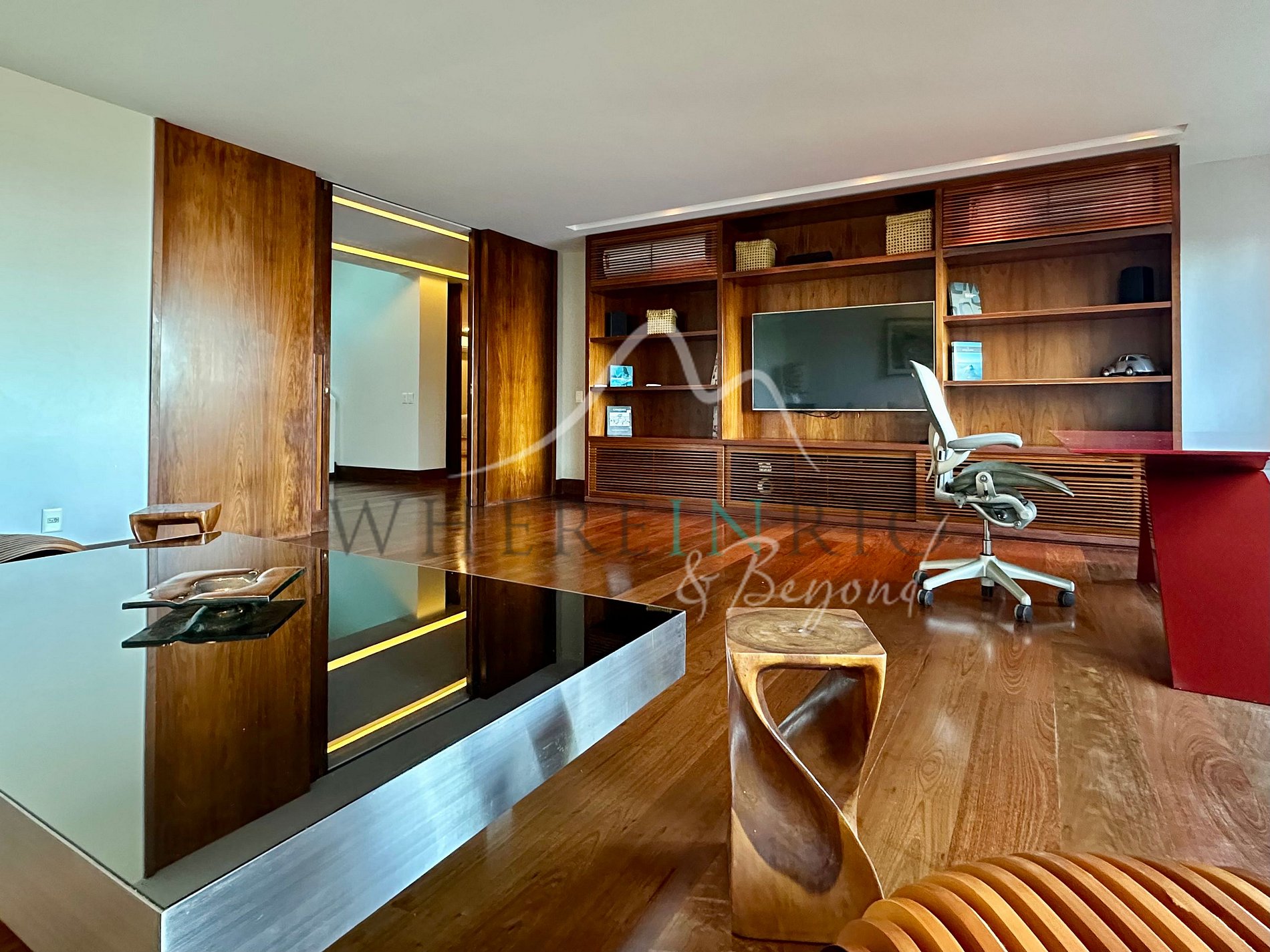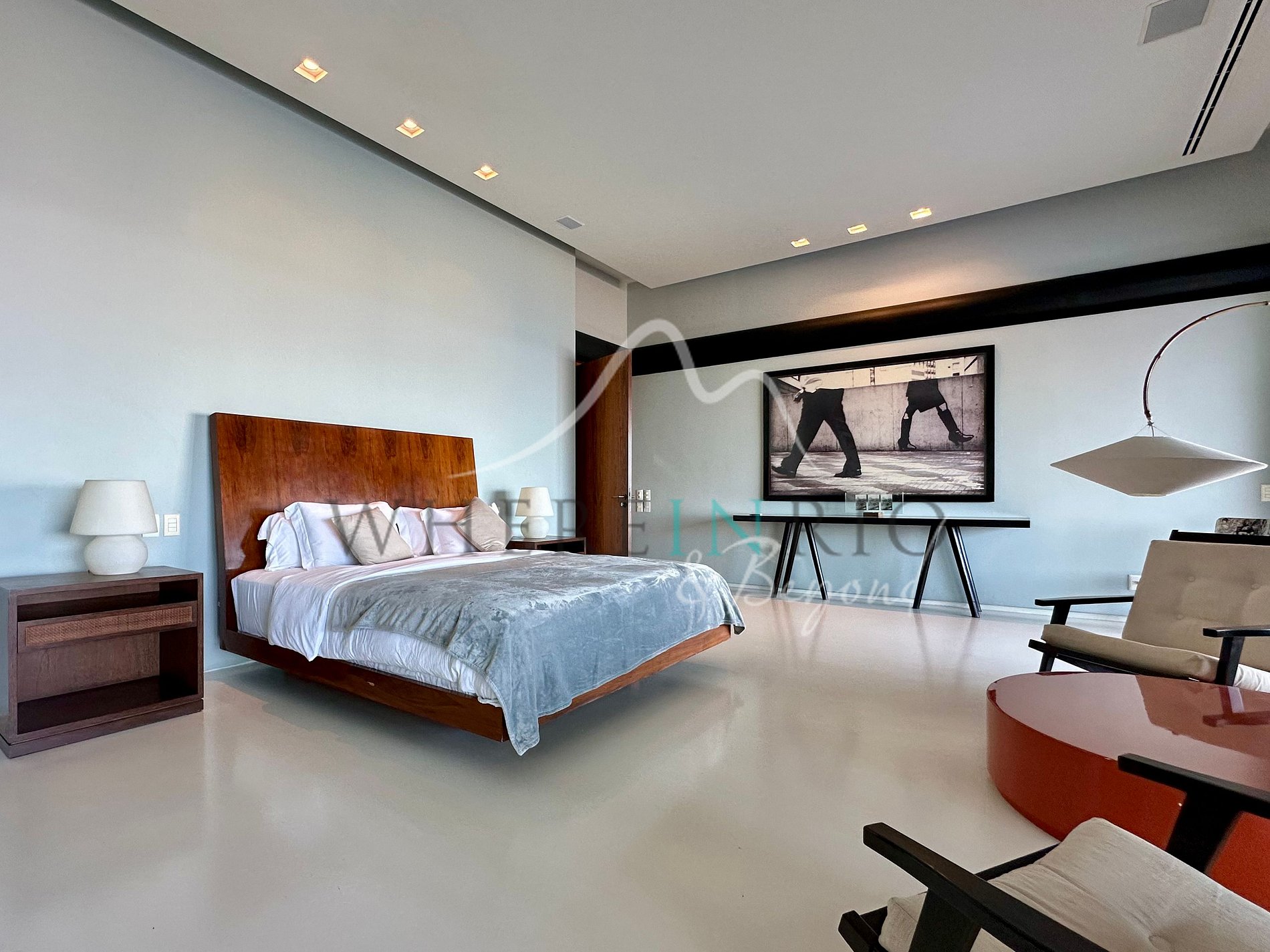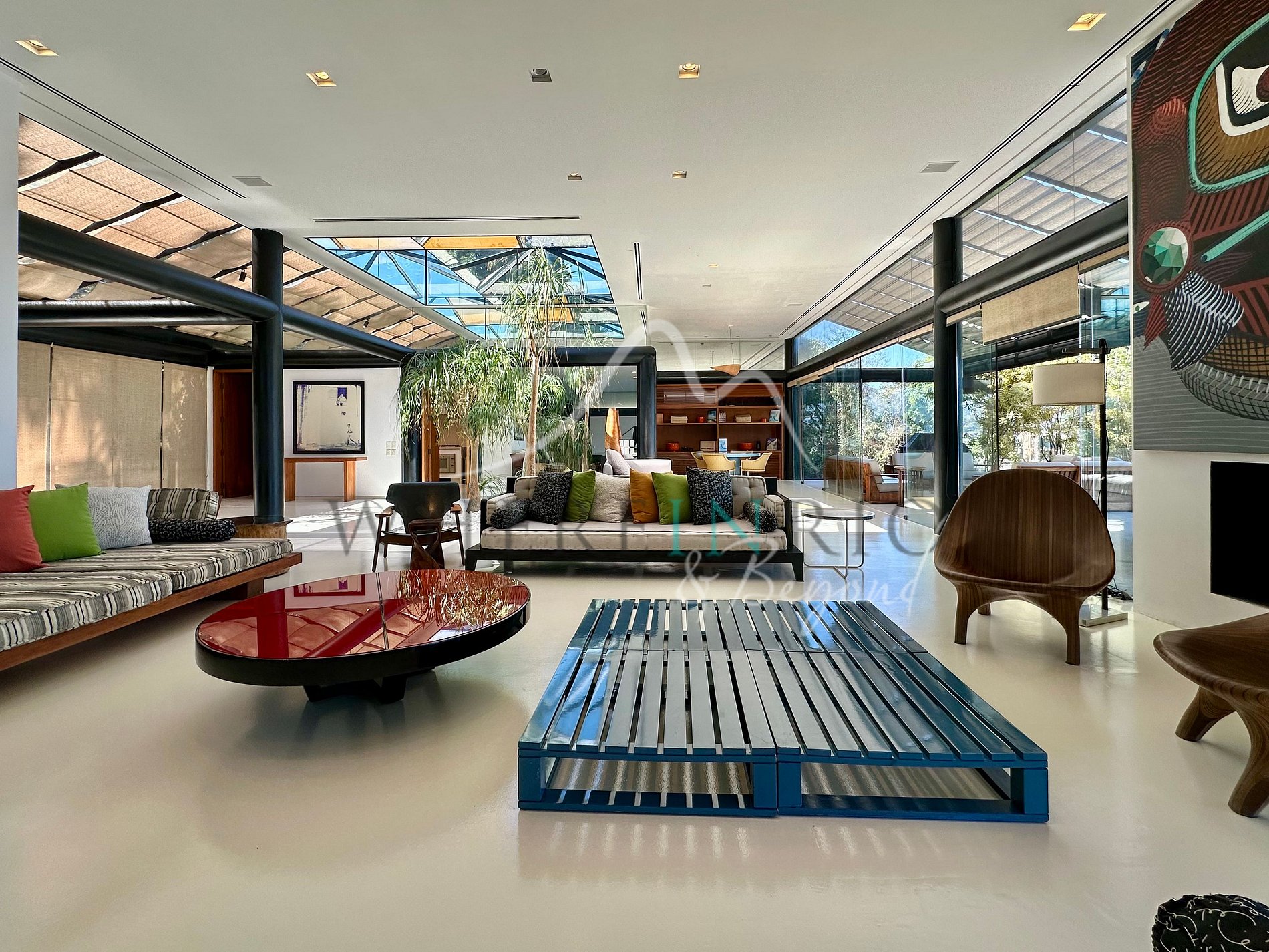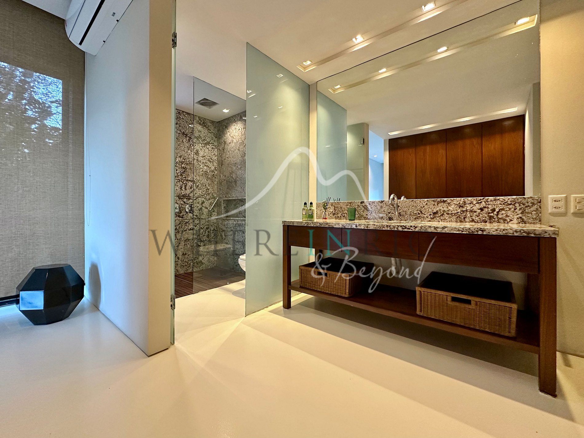 Com 900 m², esta casa possui quatro suítes elegantes, interiores iluminados com paredes de vidro e um terraço com piscina infinita de frente para o mar. O design moderno une luz natural, conforto e elegância tropical em meio a jardins exuberantes.