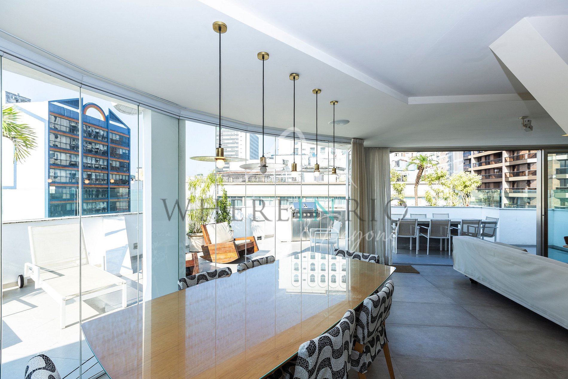 Magnífica cobertura de 300 m² com 3 suítes na junção de Ipanema e Leblon. Vista panorâmica de 180° para o Cristo Redentor e a praia de Ipanema, jacuzzi privativa e terraço gourmet.