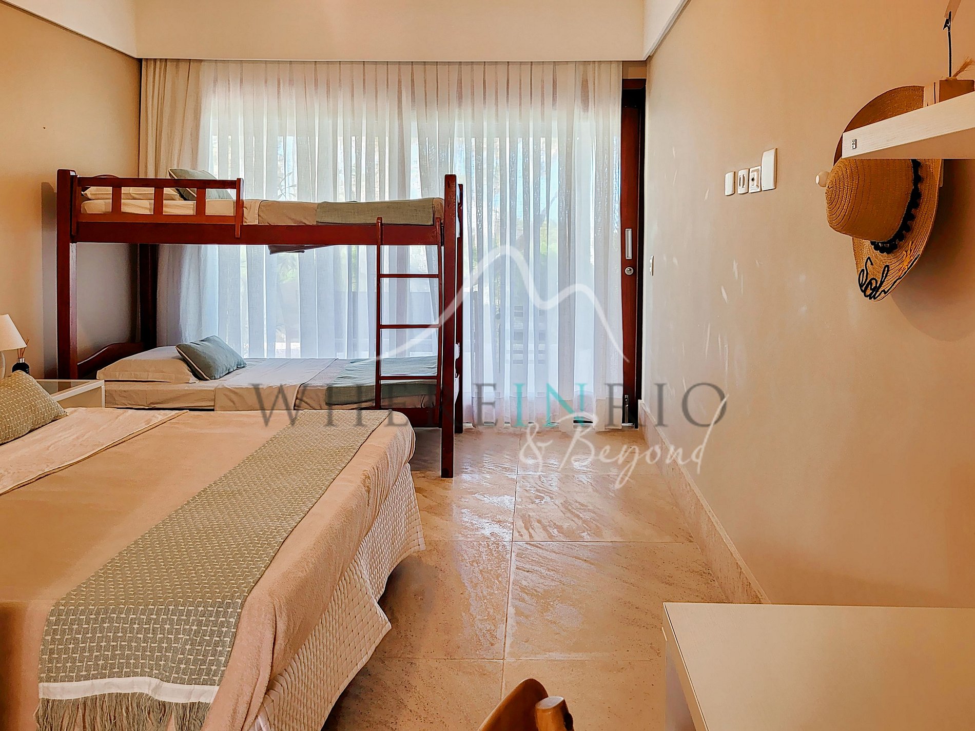 Esta moradia de 650 m2, a apenas 30 metros de uma praia privada, tem 5 suítes, 4 das quais estão no coração da casa e 1 suíte completa mais atrás, perto da garagem. A suíte master tem um guarda-roupa, um terraço e uma banheira de hidromassagem de frente para o mar.
