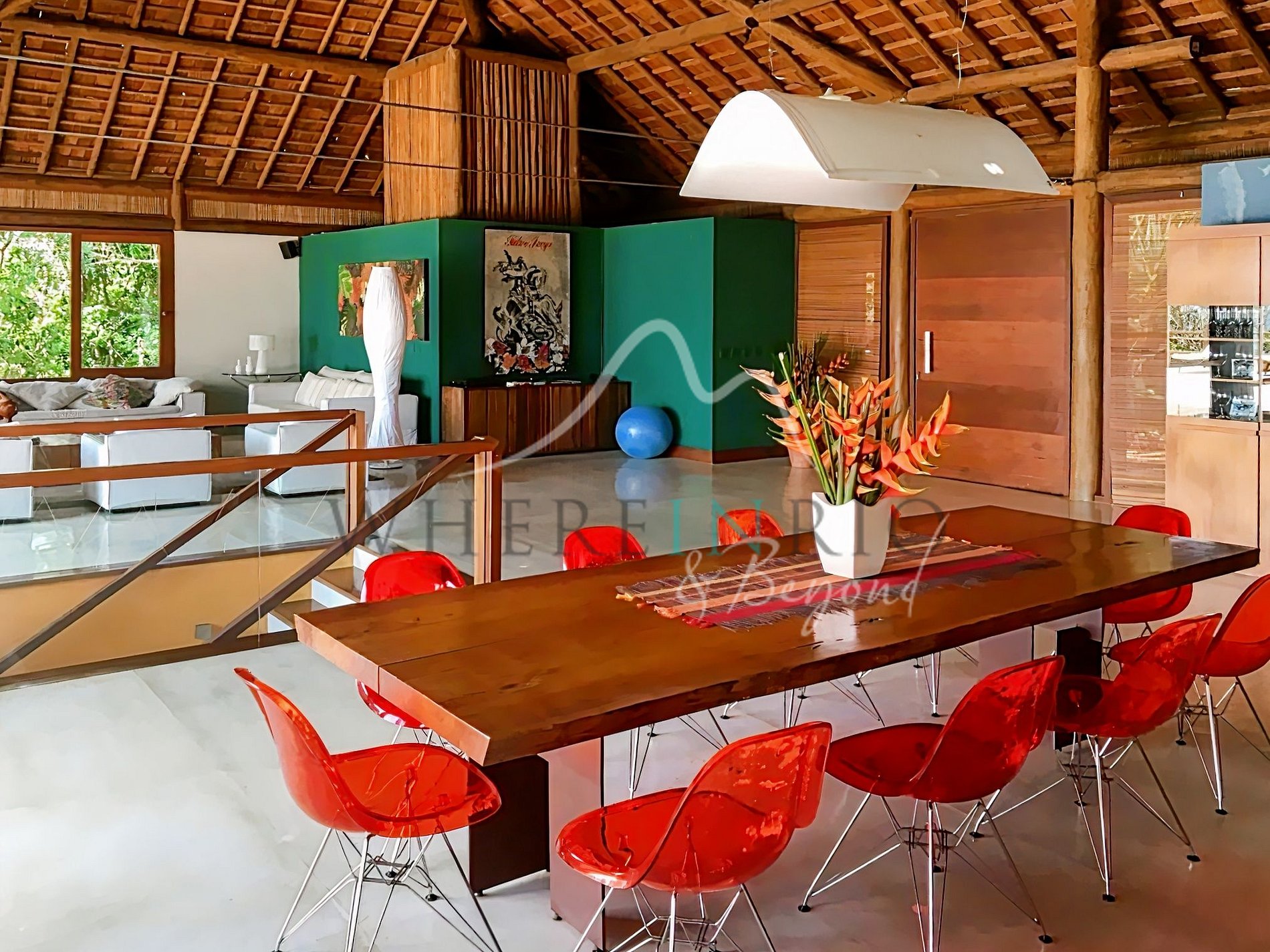 Casa com uma natureza exuberante, localizada no condomínio Villa de São José, com 4 suítes e pode acomodar até 8 pessoas. A casa oferece uma vista panorâmica para o mar, uma piscina, uma cozinha bem ventilada com uma ilha aberta na sala de estar que permite criar um delicioso espaço de vida na casa.