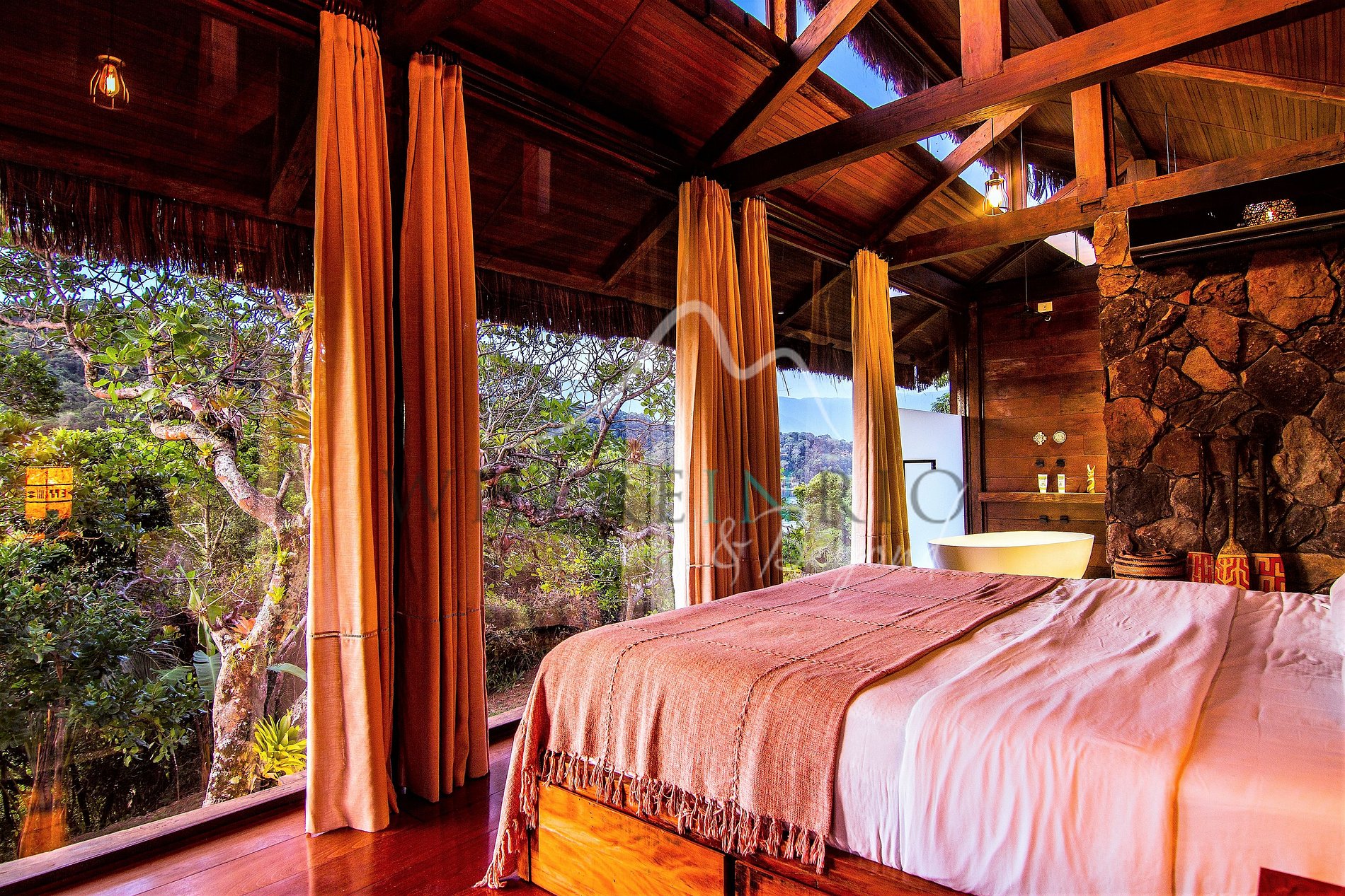 Acesso via lancha (7 minutos de Frade) ou heliporto para transfer privado do Rio de Janeiro ou São Paulo.