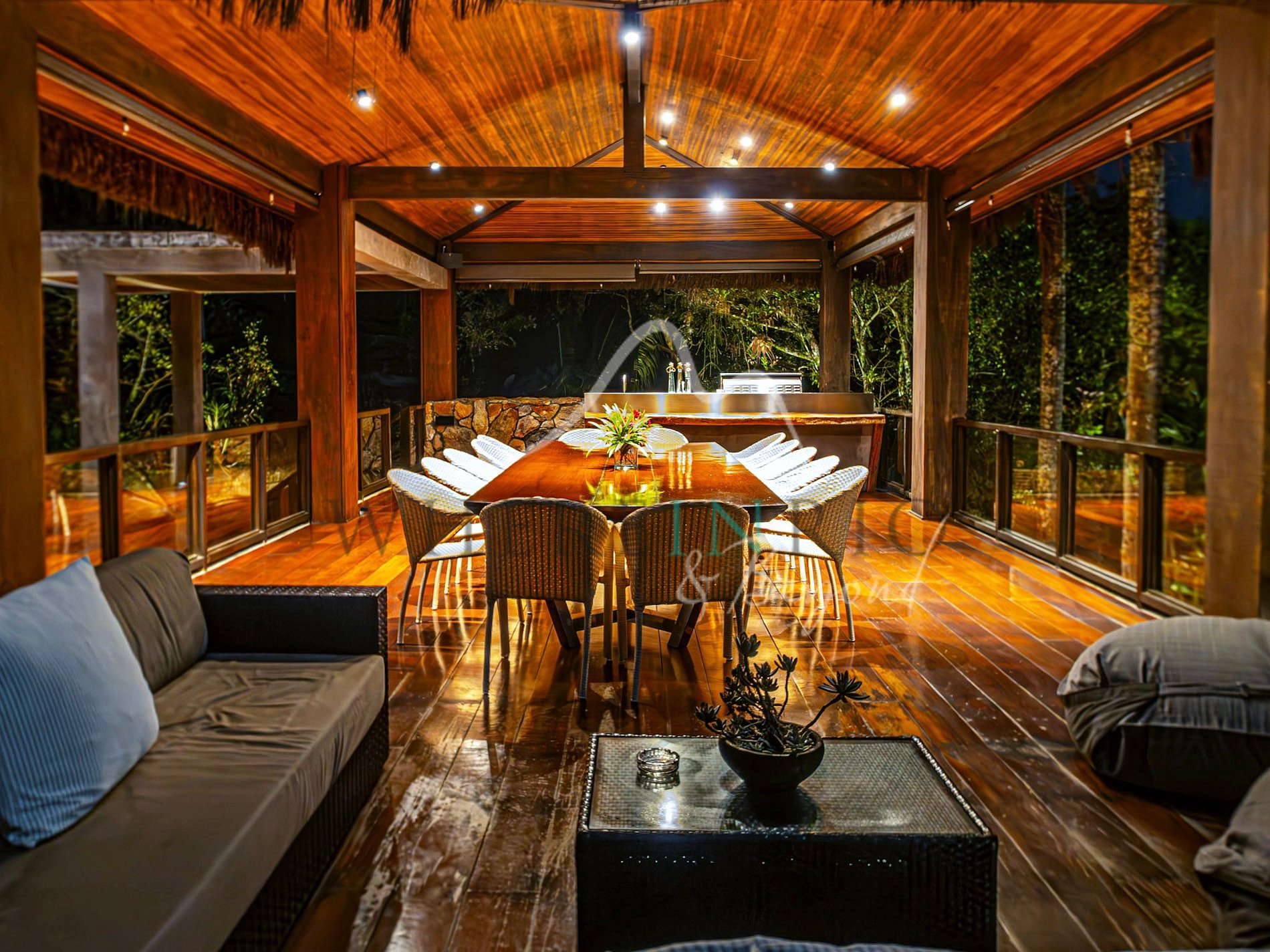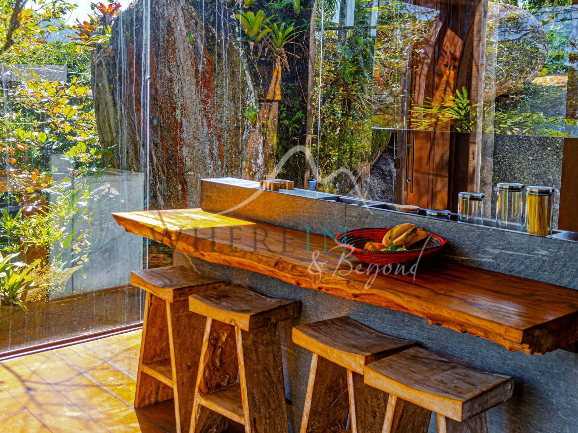 Os hóspedes têm acesso completo à ilha, incluindo a Casa Principal, os bungalows, piscina, jacuzzi, solarium, praia privativa e terraços. Lancha opcional para explorar a região.
