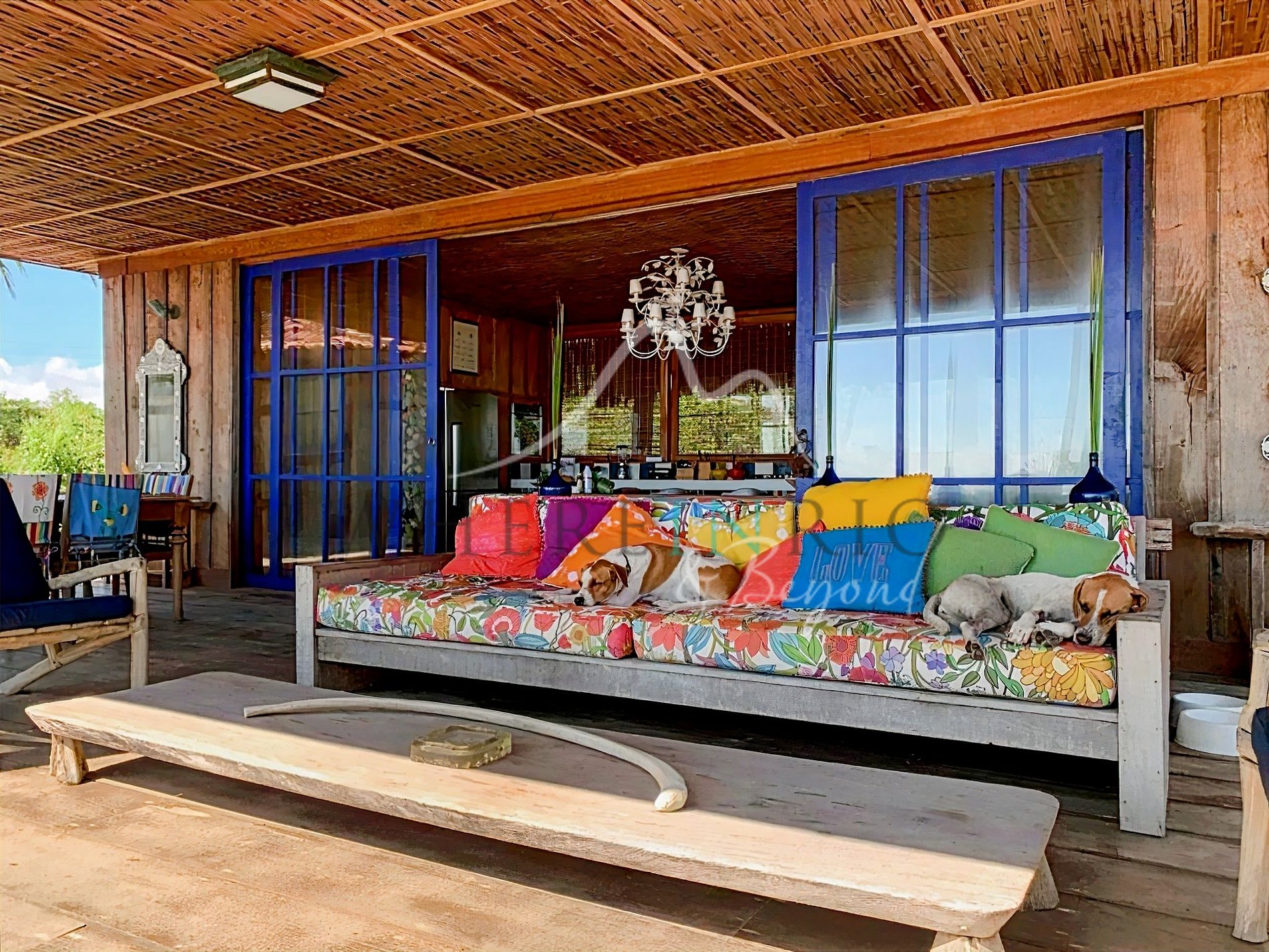 O bangalô principal possui 3 suítes e uma grande sala. É possível acrescentar 2 camas extras para crianças.