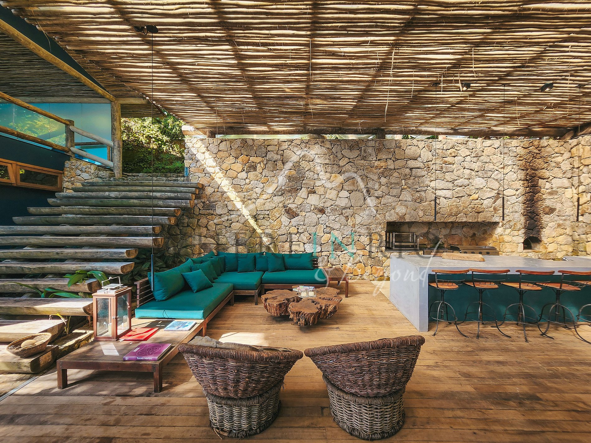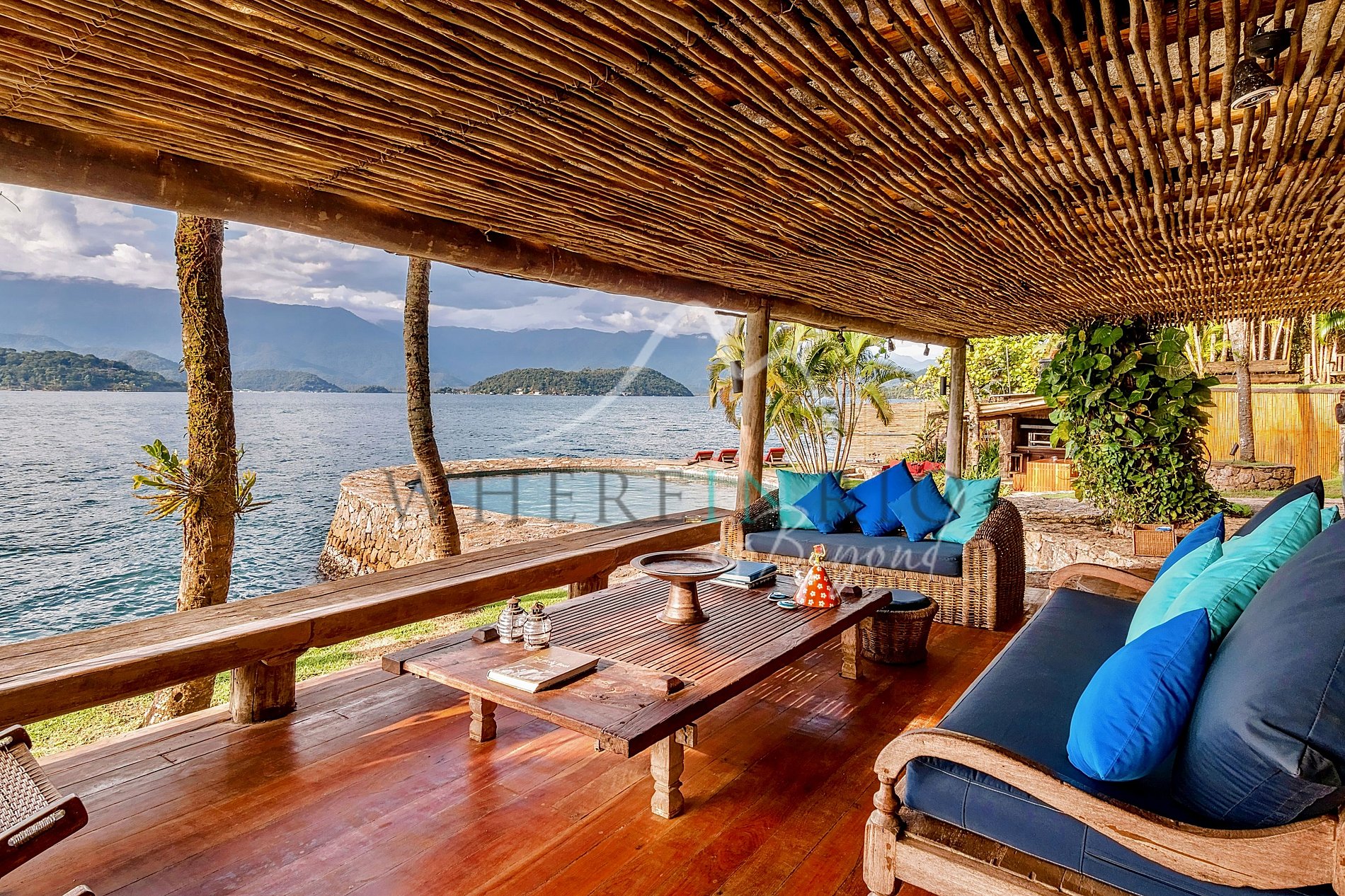 Esta propriedade combina conforto, privacidade e design natural, usando pedra, madeira e bambu. Wi-Fi disponível em toda a ilha. Condomínio oferece quadra de tênis, campo de futebol e academia. Acesso apenas por barco ou helicóptero, garantindo uma experiência exclusiva.