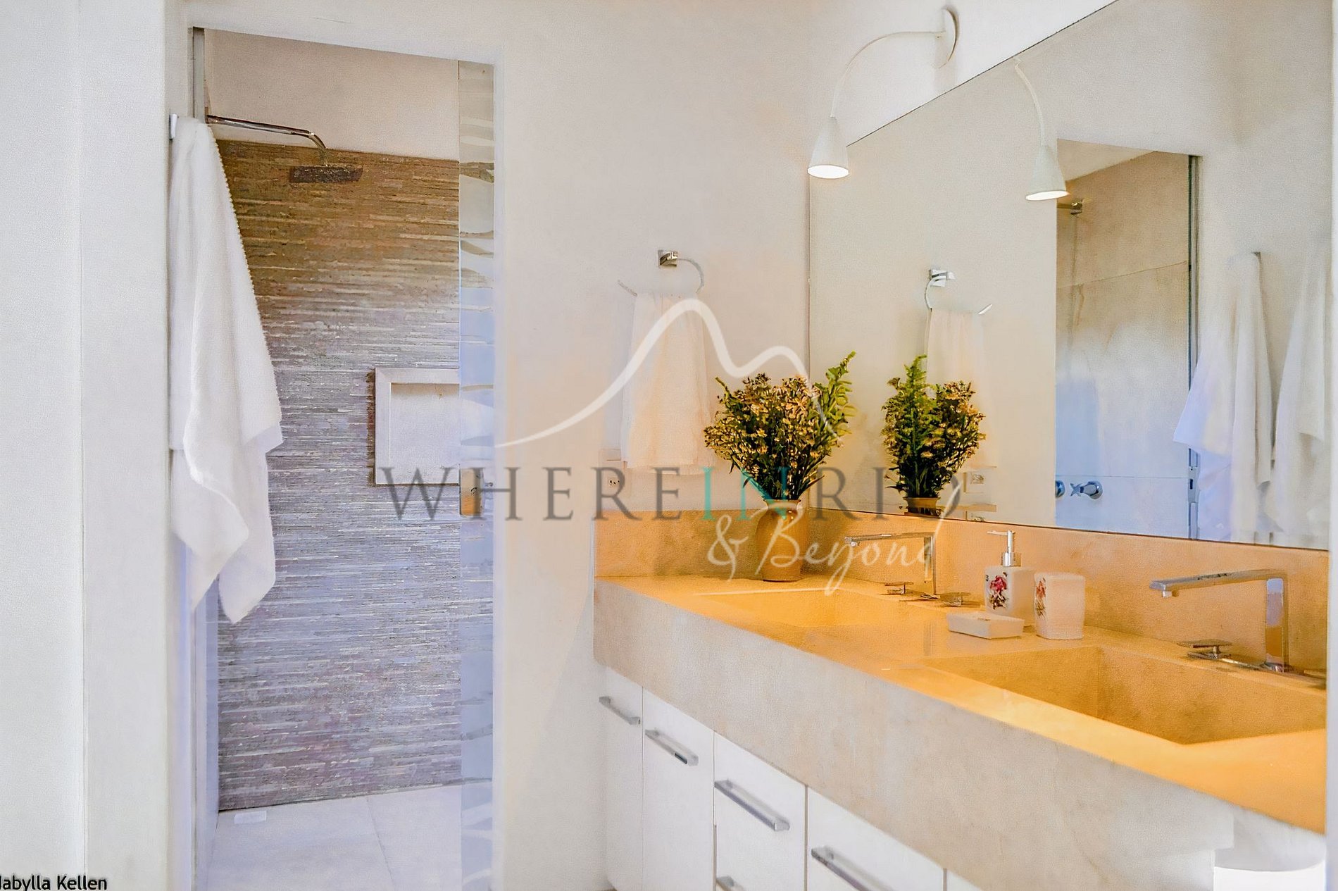A casa tem uma ampla cozinha americana, bem equipada e moderna.