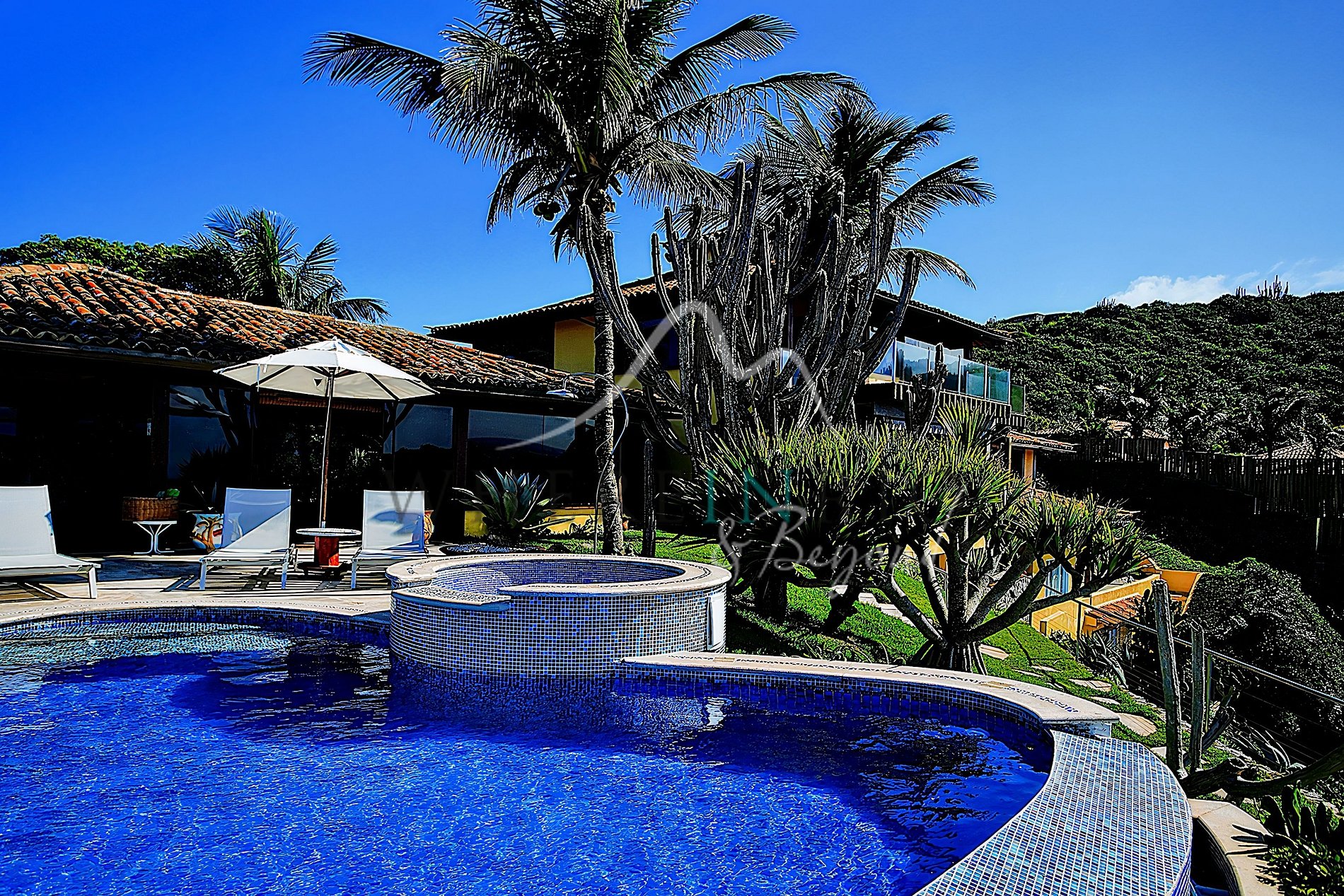 Casa de luxo com 677 m² de área útil e 3101 m² de área total em Búzios. Localizada nas colinas da Ferradura, oferece uma das vistas mais deslumbrantes da cidade, piscina infinita, jacuzzi, bar e serviços de hotel cinco estrelas.