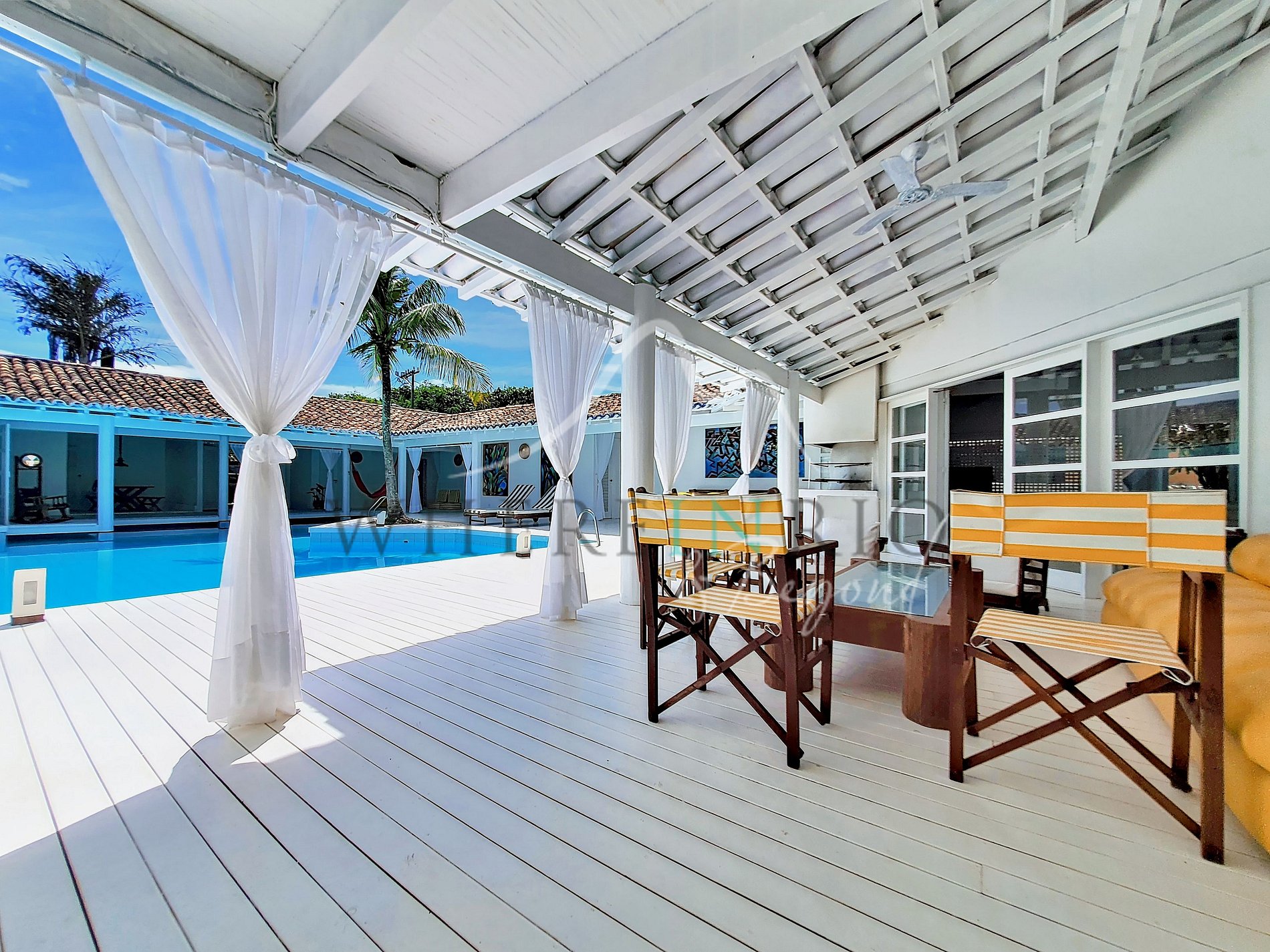 Totalmente reformada e decorada em estilo alegre e elegante, esta casa de luxo oferece muita luz natural e teto alto. Possui varanda gourmet com churrasqueira, garantindo conforto e segurança para aluguel sazonal de alto padrão.