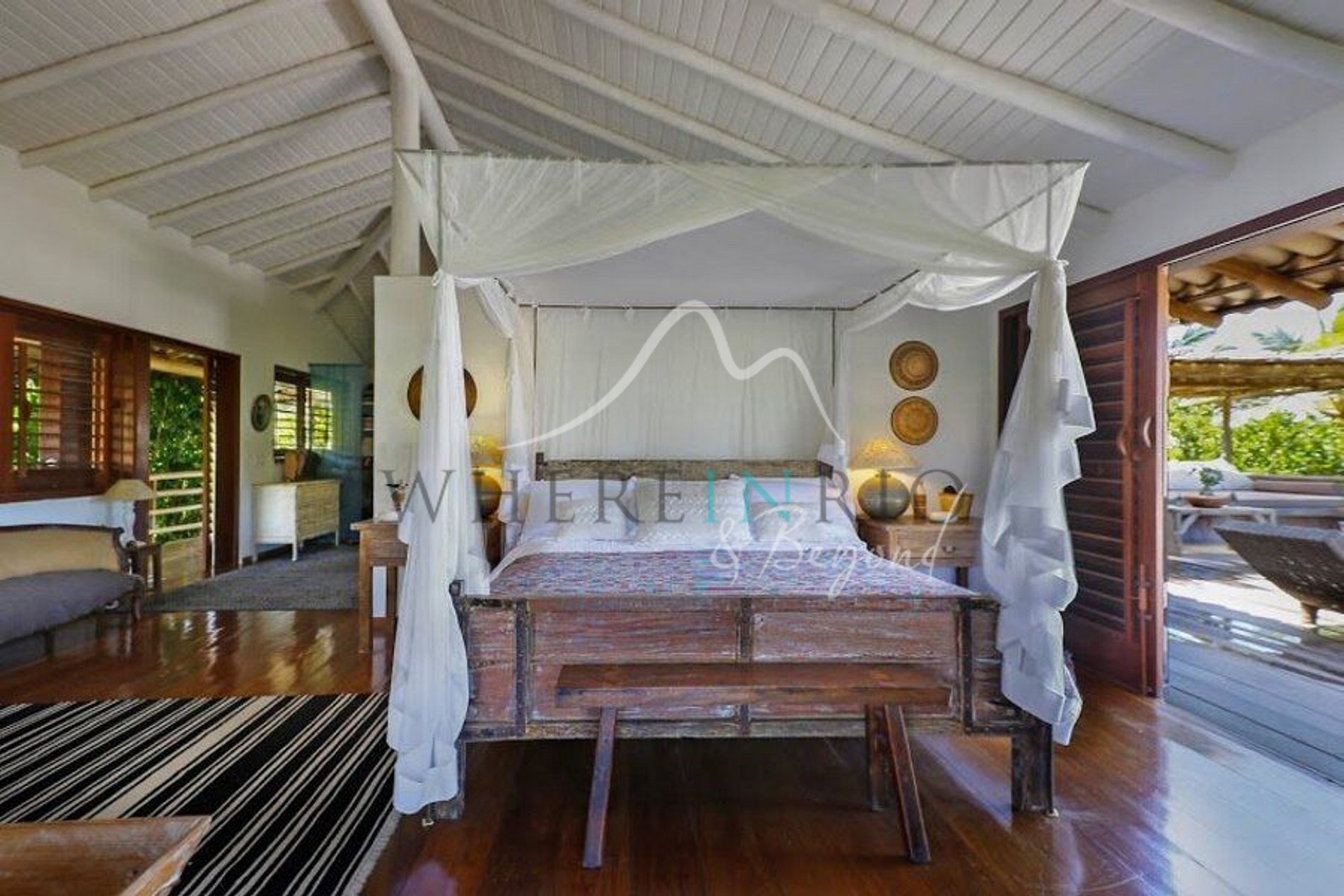 Linda propriedade de luxo em Trancoso com 6.600 m² e duas casas interligadas. Acomoda até 12 pessoas com 5 suítes, incluindo suíte master com vista para o mar e ofurô, piscina privativa, cozinha gourmet e jardim de Mata Atlântica com piscina de pedras e ducha externa.