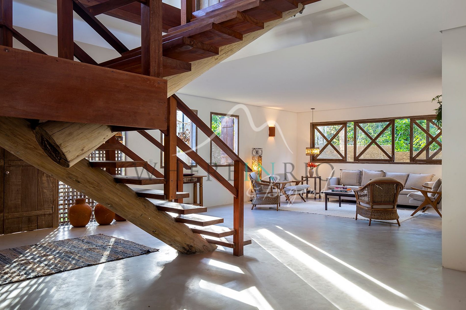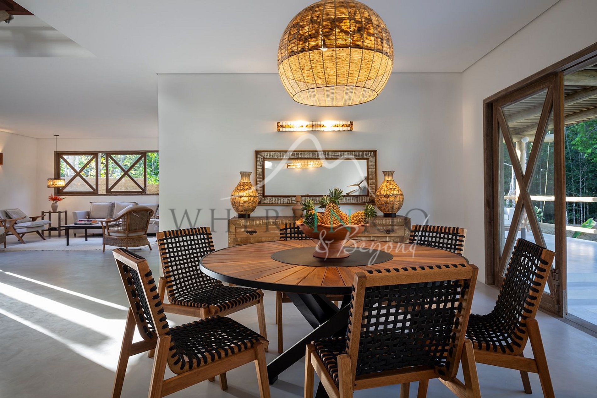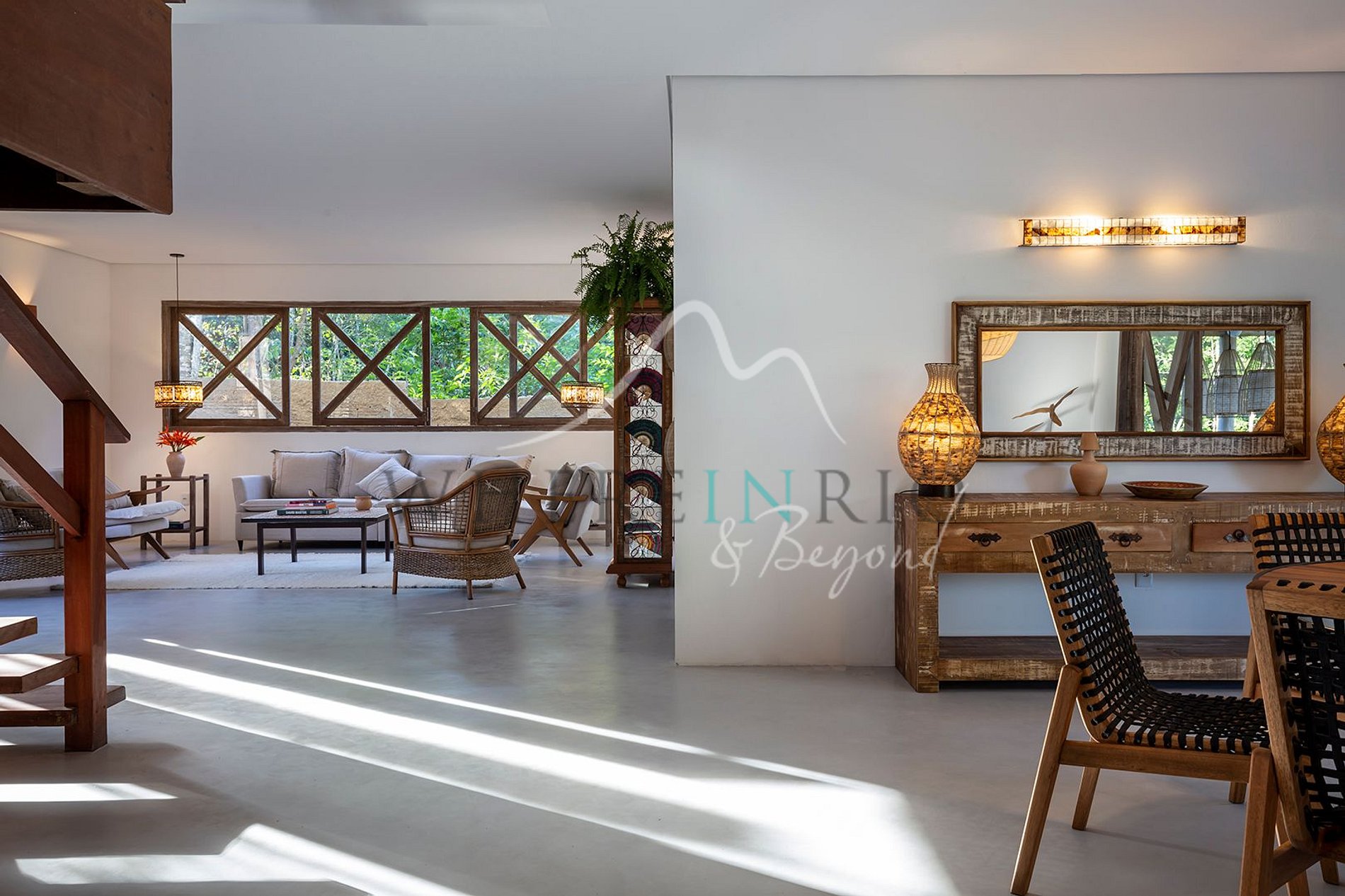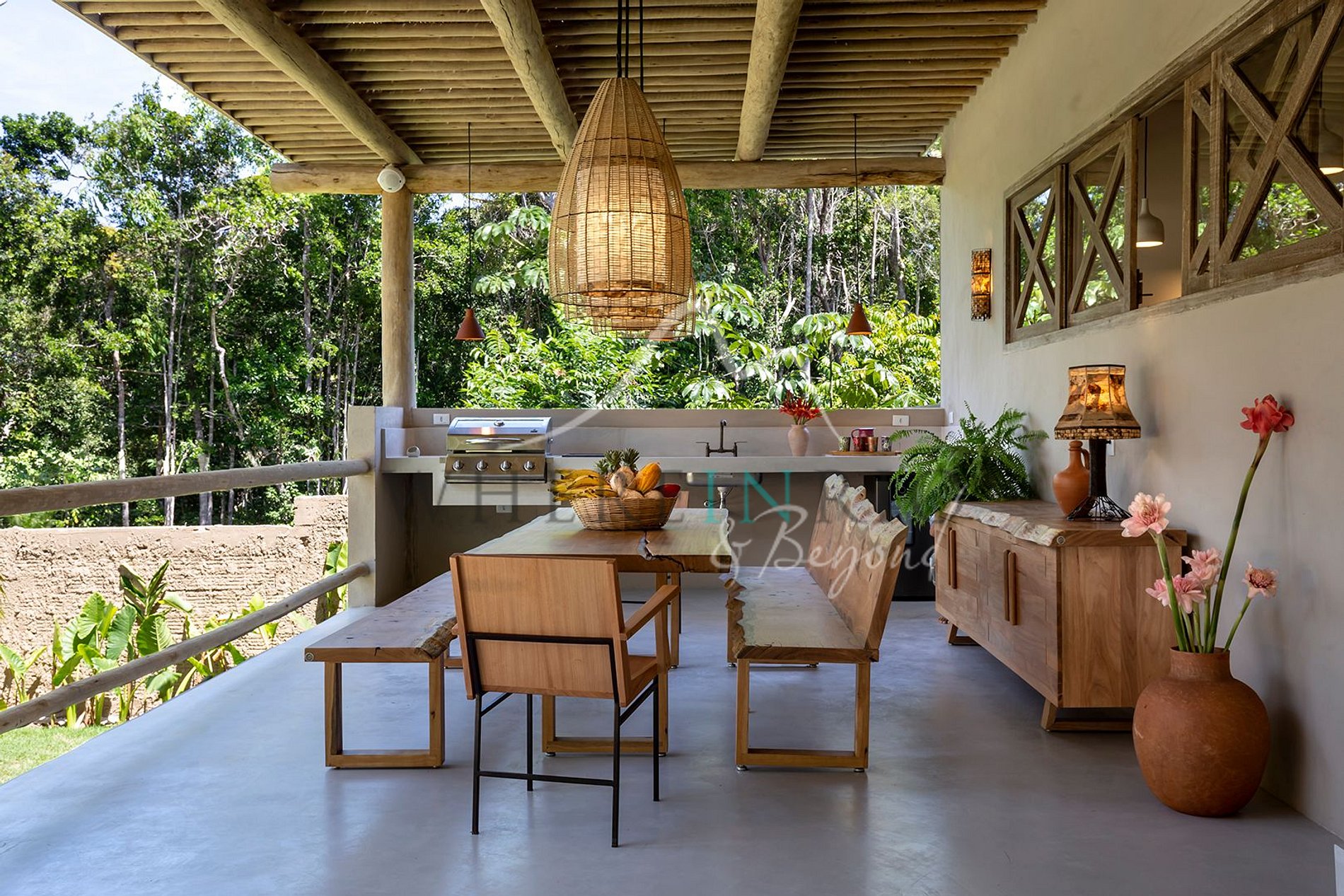 Com 550 m², esta casa combina elegância e simplicidade em um estilo boêmio sofisticado. Ideal para famílias ou grupos que buscam tranquilidade em meio ao verde.