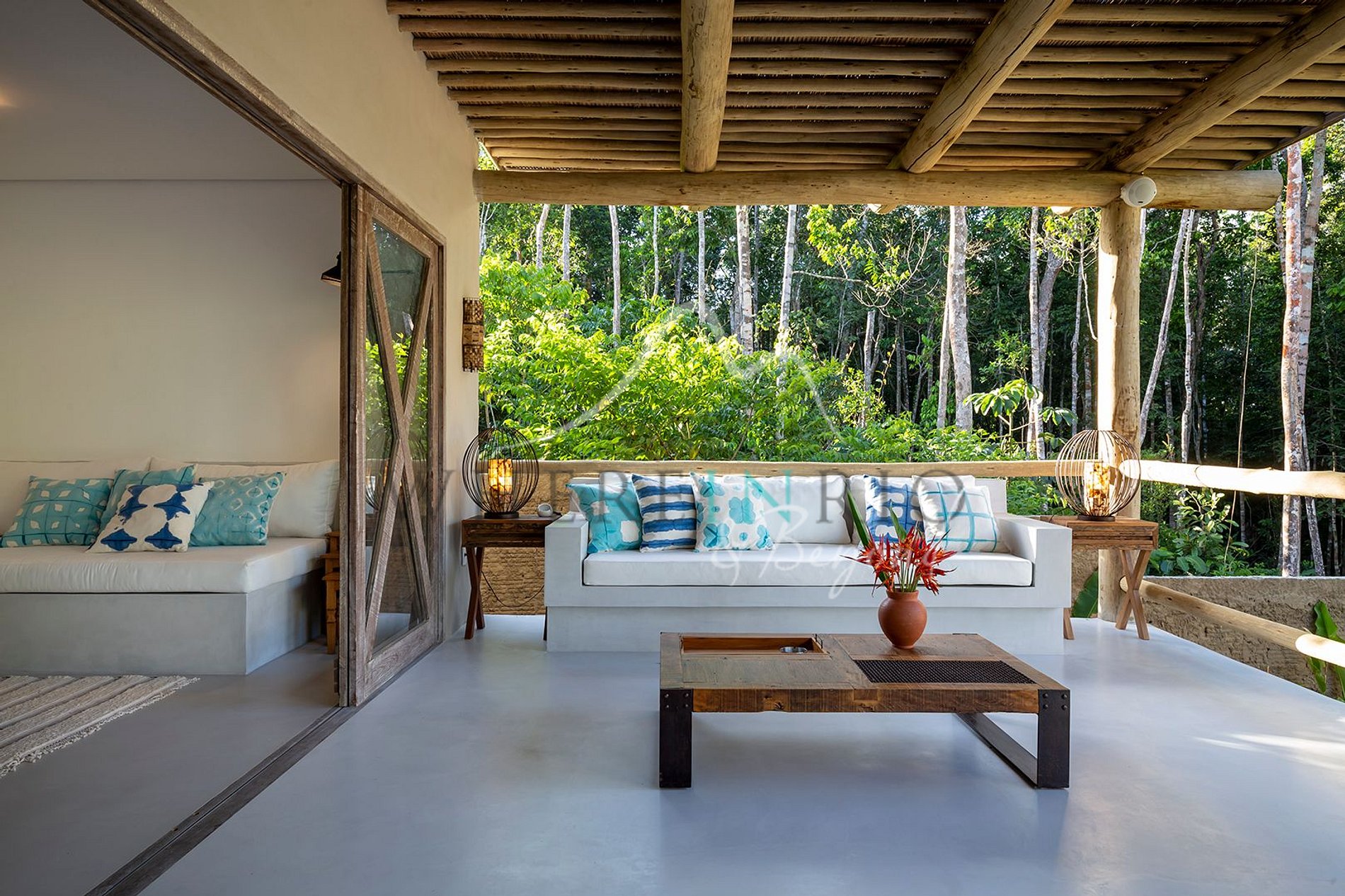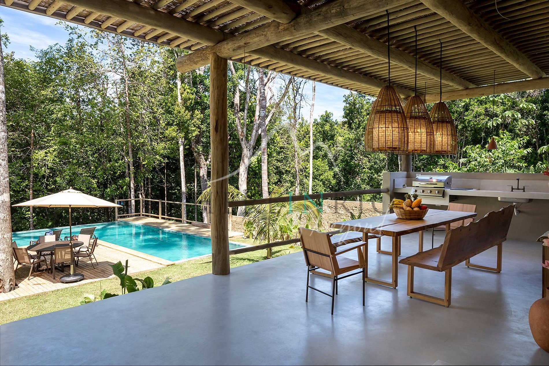 Casa boho-chic com piscina e hidromassagem em Trancoso, cercada por natureza.
